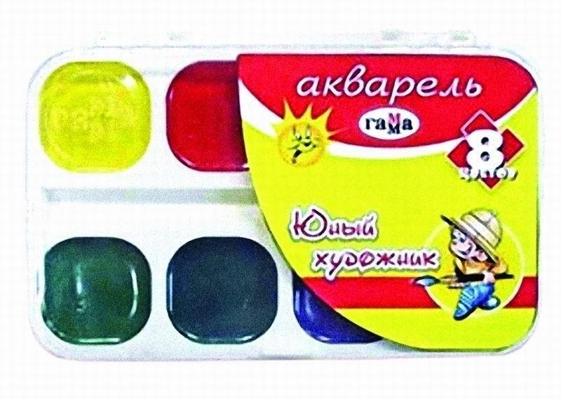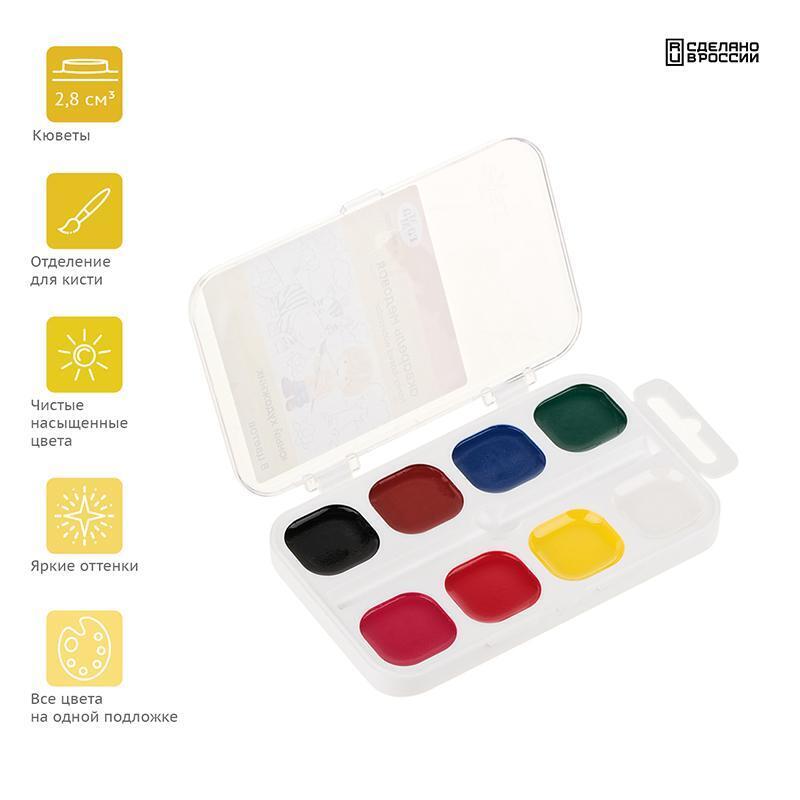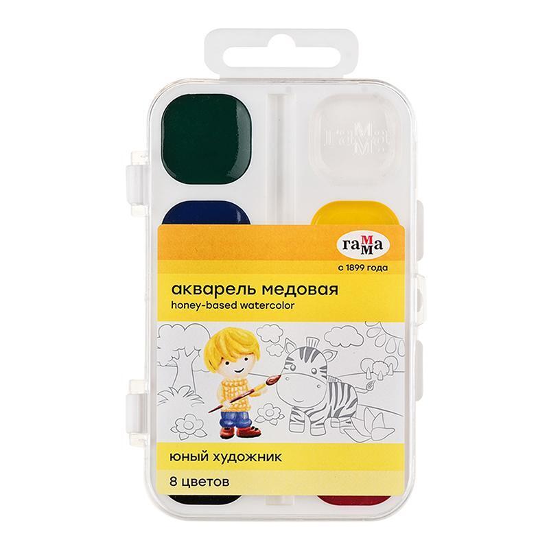 Акварель медовая "Юный художник" 8 цветов, 2.8см³, пластиковая упаковка