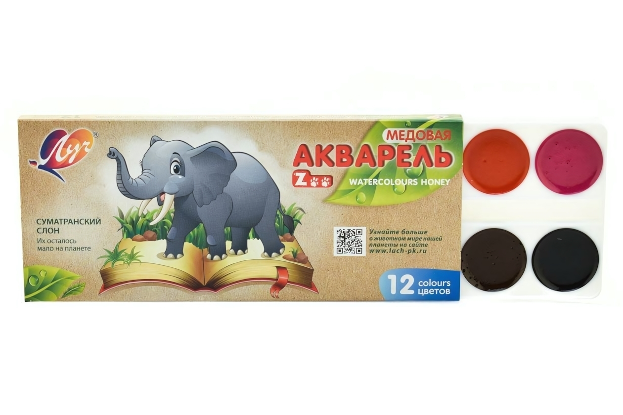Акварель медовая "ZOO", 12 ярких цветов, для детского творчества, Луч