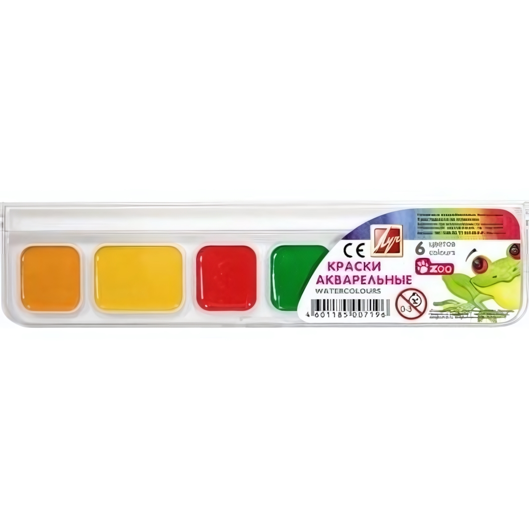 Акварель медовая 'ZOO' 6 цветов, пластиковый корпус, легко смывается