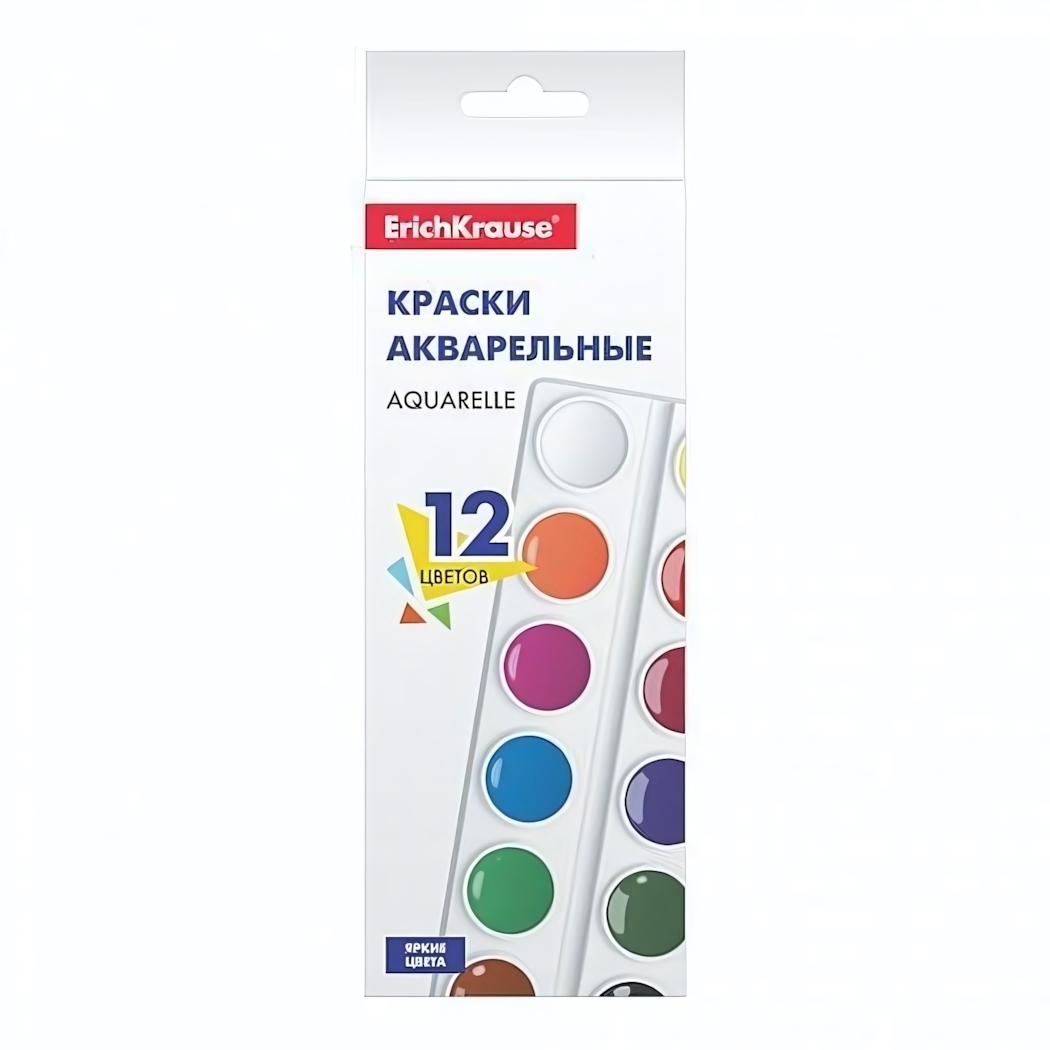 Акварель ErichKrause "Basic", 12 ярких цветов для рисования, полусухая, в картоне