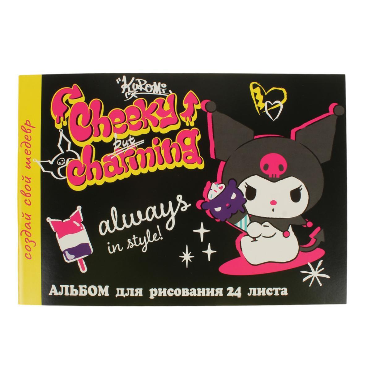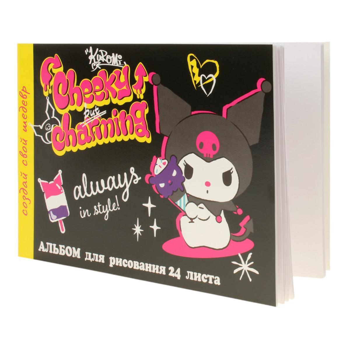 Альбом для рисования "Kuromi", 24 листа на скрепке, картонная обложка, офсет 100г/м²