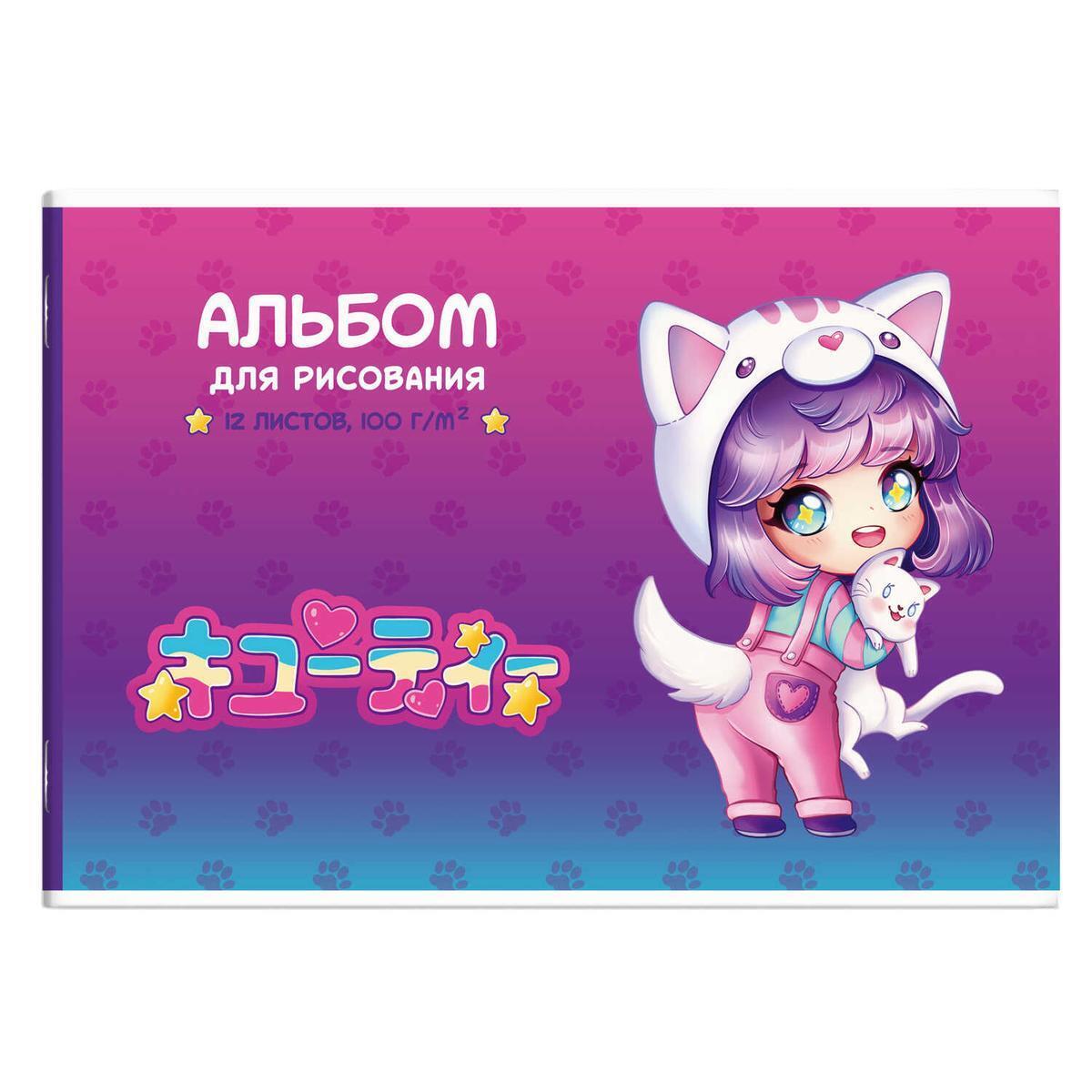 Альбом для рисования A4, 12 листов, плотность 100 г/м², яркий дизайн "Чиби"