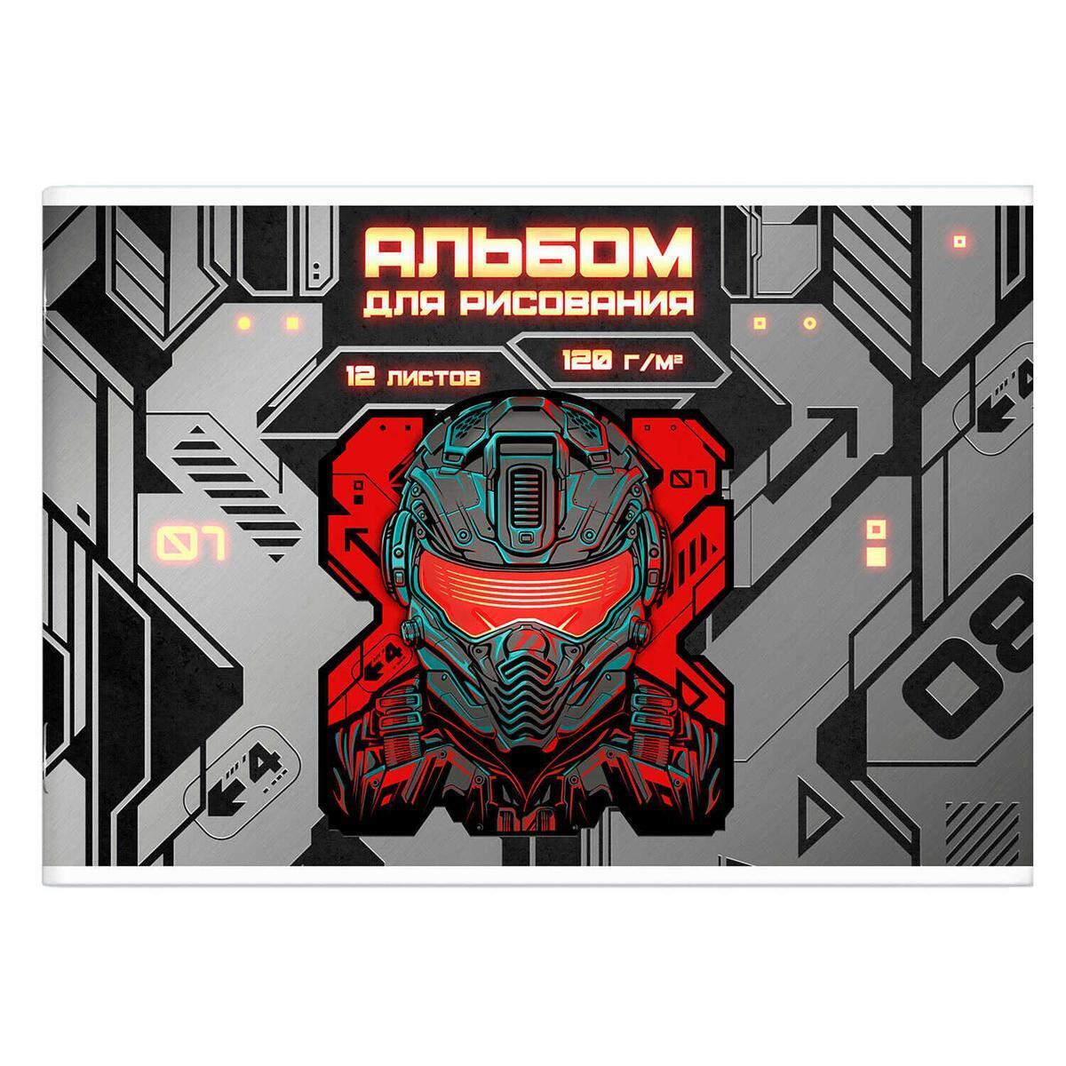 Альбом для рисования A4, 12 листов, плотность 120 г/м², серия "Кибер", яркий дизайн