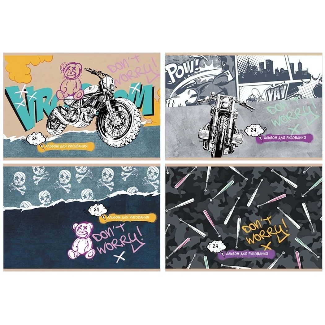 Альбом для рисования 'Don't worry' 24л, А4, плотность 100г/м2, картонная обложка