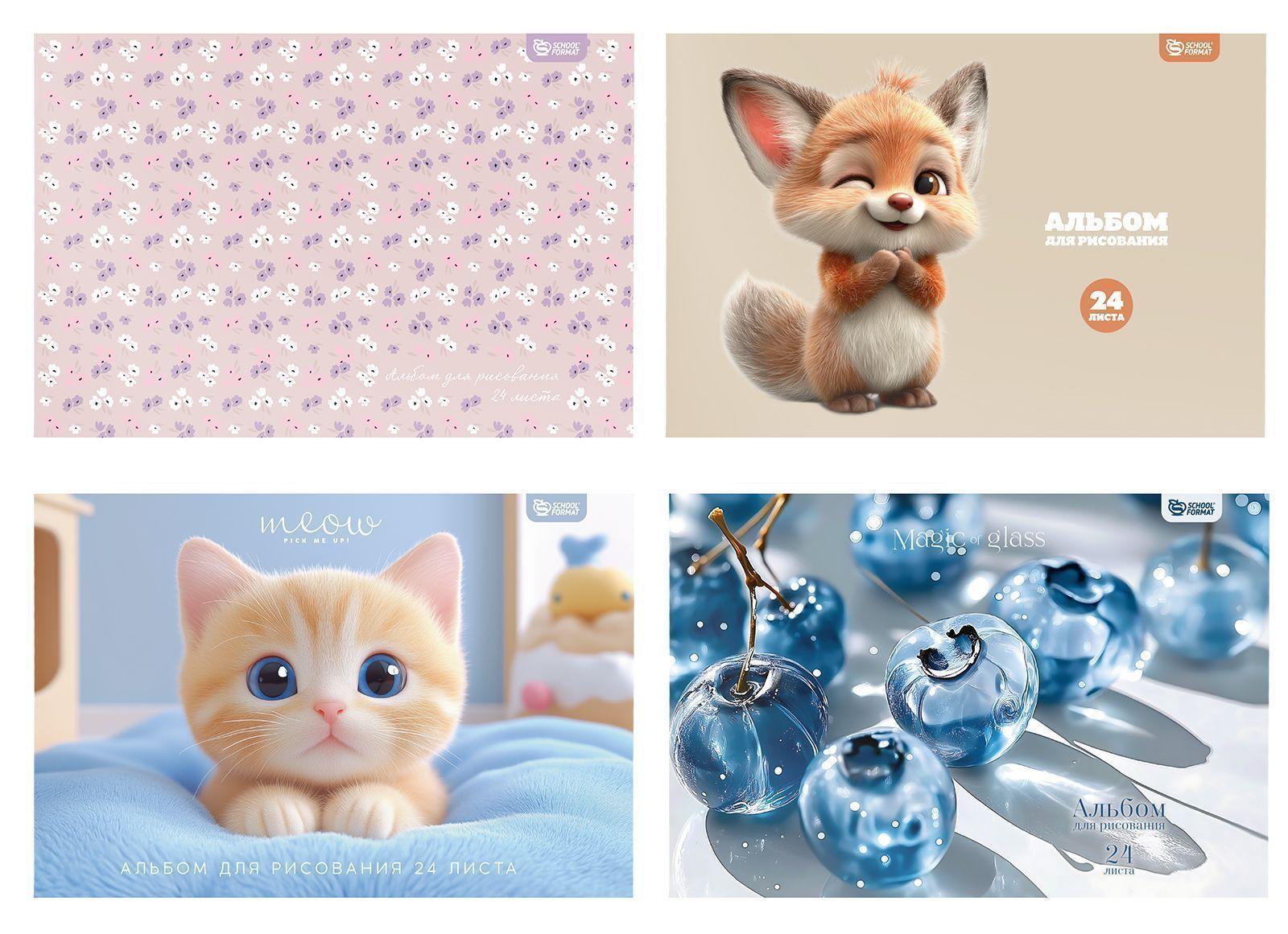 Обложка представлена в нескольких вариантах: с нежными узорами, милыми животными и декоративными иллюстрациями. Отгружается один альбом, дизайн определяется случайным образом из доступных на складе.