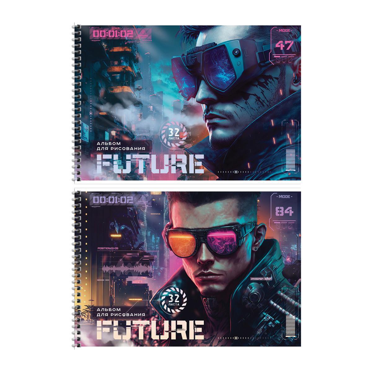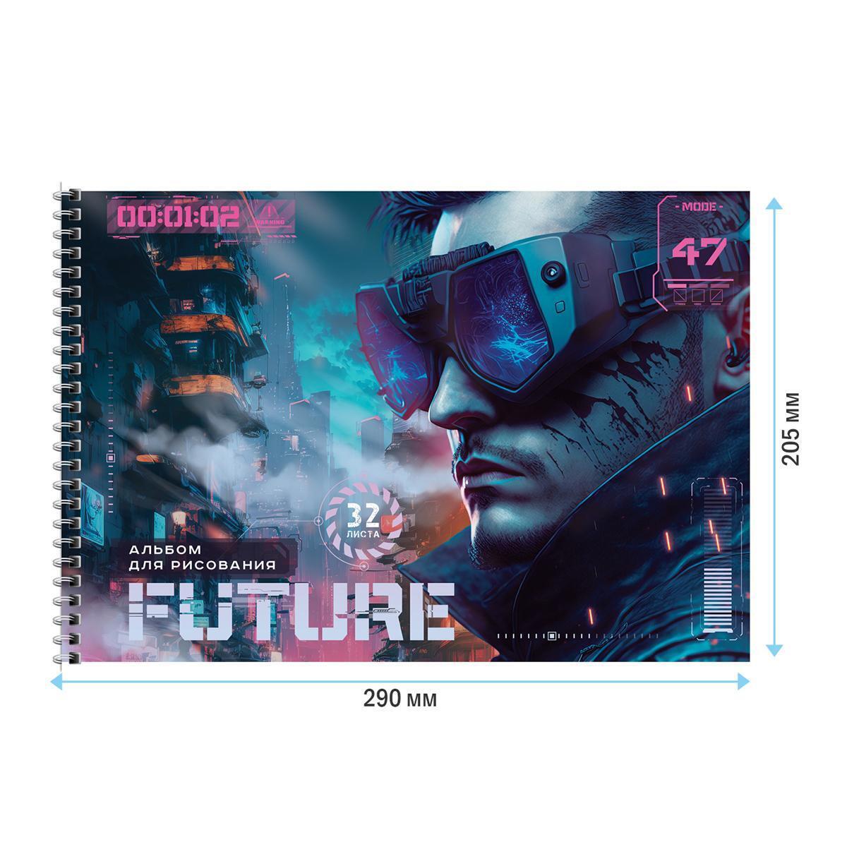 Размер альбома составляет 203х290 мм, а плотность бумаги — 100 г/м², что делает его идеальным для различных техник рисования. Обложка оформлена в ярких цветах с элементами футуристического дизайна, что добавляет оригинальности и стиля. Альбом на гребне позволяет легко переворачивать страницы и удобно рисовать, не мешая себе.