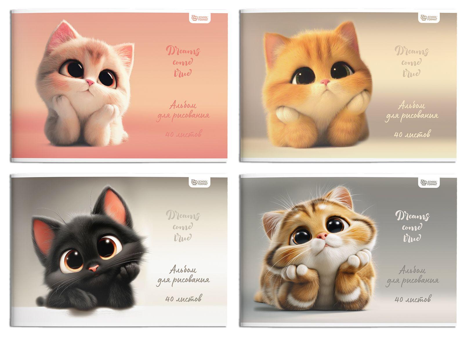 Альбом для рисования с яркой обложкой «Мечтательные котята»