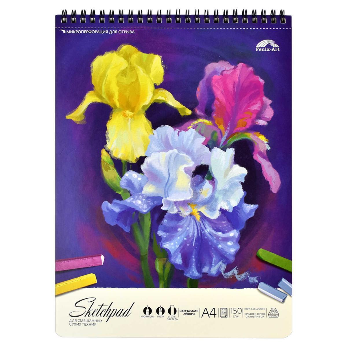 Альбом для смешанных техник А4, 30 листов, 'Ирисы', гребневой переплёт, 150 г/м²