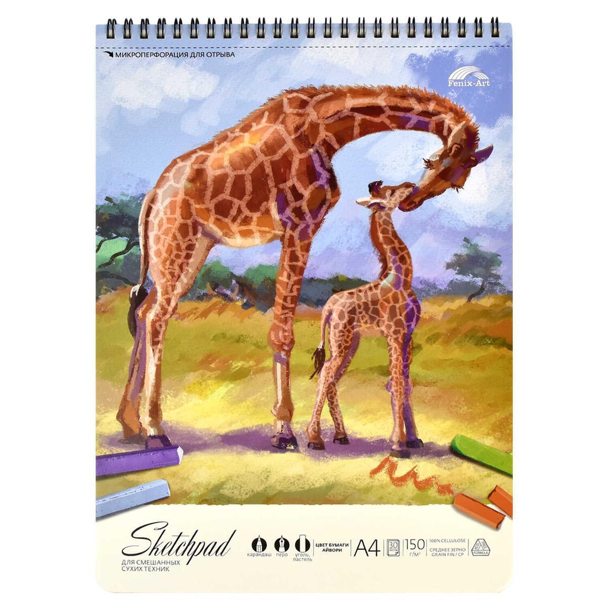 Альбом для рисования А4, 30 листов, плотность 150г/м², "Жирафы", мягкий переплёт