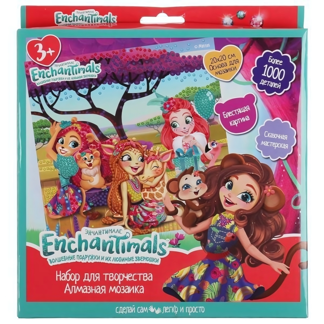 Алмазная мозаика 'Энчантималс' от ТМ 'Мульти Арт' — это не просто набор для творчества, а целый мир фантазии и волшебства. Этот набор станет отличным подарком для маленьких поклонниц мультсериала о волшебных подружках и их любимых зверюшках. С помощью более 1000 деталей, которые входят в комплект, ваша маленькая художница сможет создать уникальную картину, декорированную сверкающими стразами.