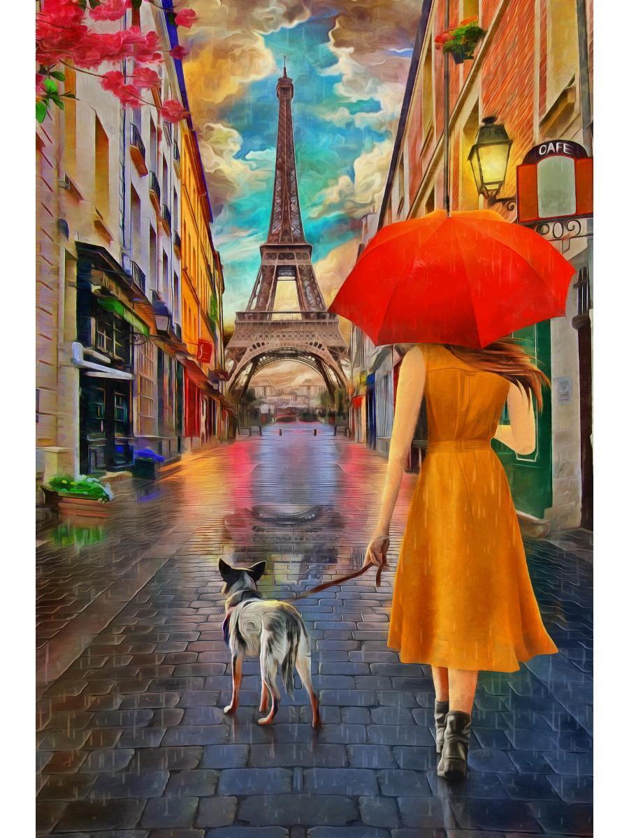 Алмазная мозаика 'Дождливый Париж', 22х32см, на подрамнике, 30 цветов