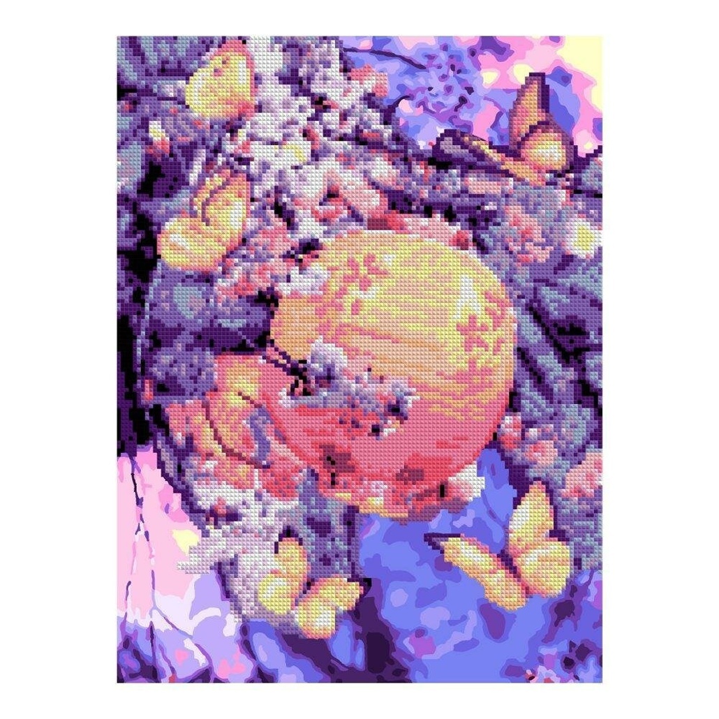 Размер готовой работы 30x40 см оптимален для оформления в стандартную раму. Цветовая палитра сочетает благородные оттенки янтарного, рубинового и изумрудного — картина органично впишется в классический и современный интерьер.