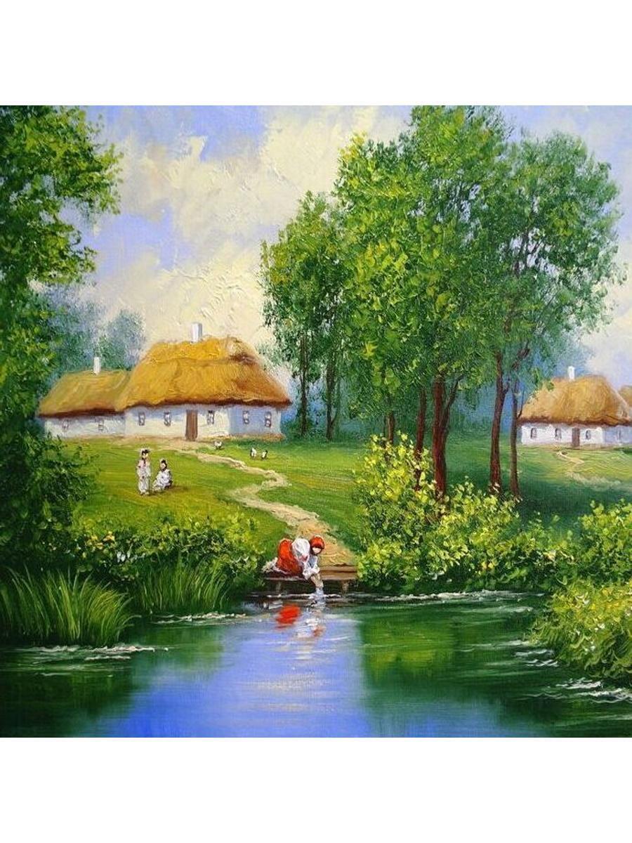 Алмазная мозаика "Жизнь на хуторе", 30х30см, полное заполнение, с подрамником