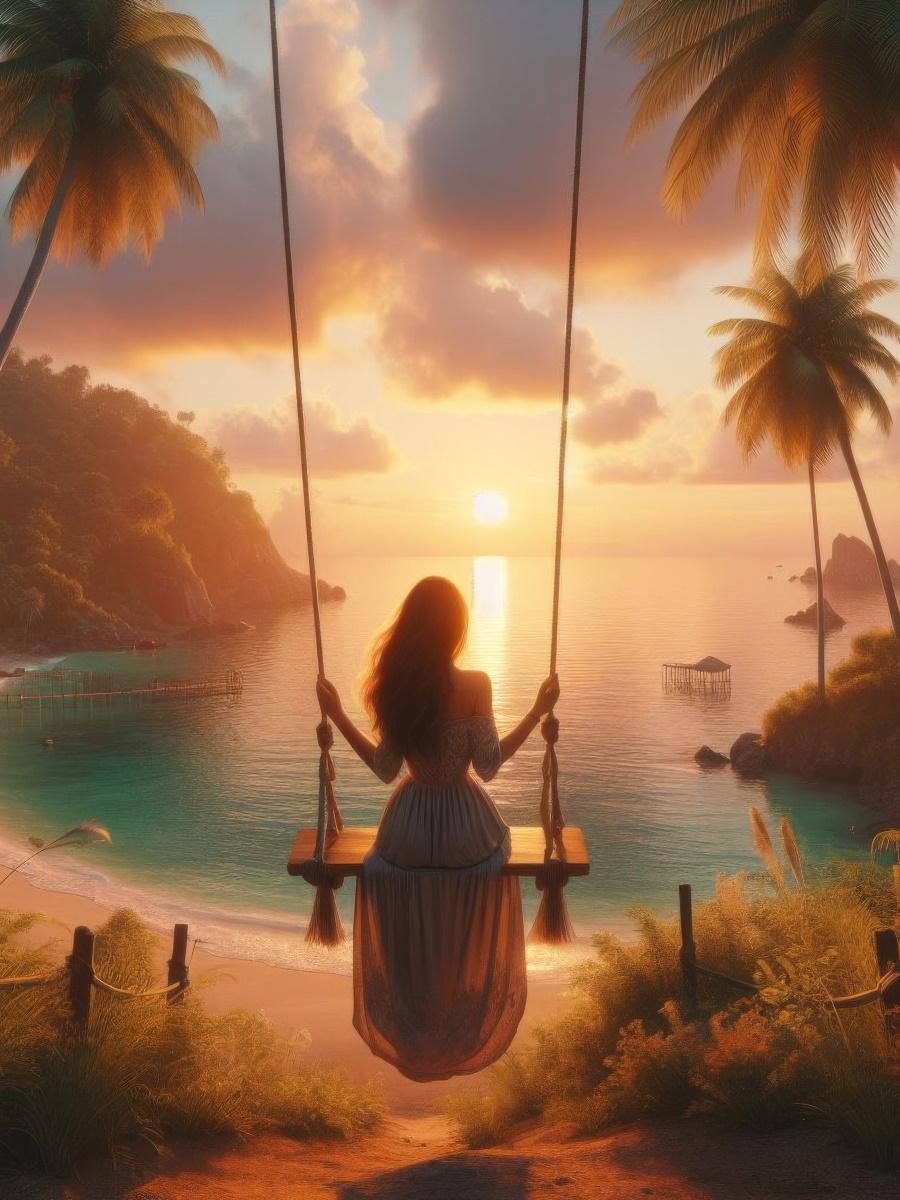 Алмазная мозаика «Девушка на качелях» 30х40 см, полное заполнение, на подрамнике, 30 цветов