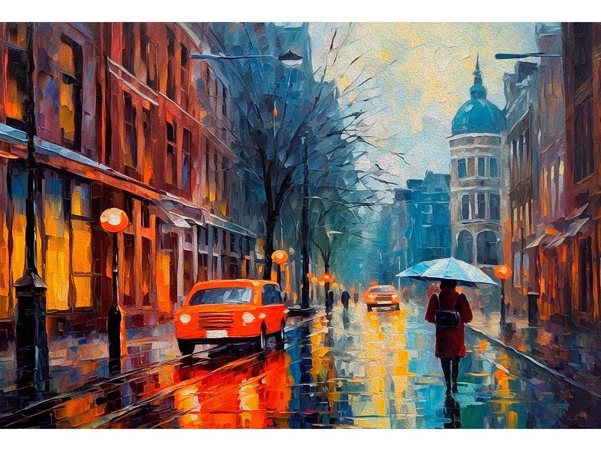 Алмазная мозаика "Дождливый город", 30х40см, полное заполнение, 30 цветов, с подрамником