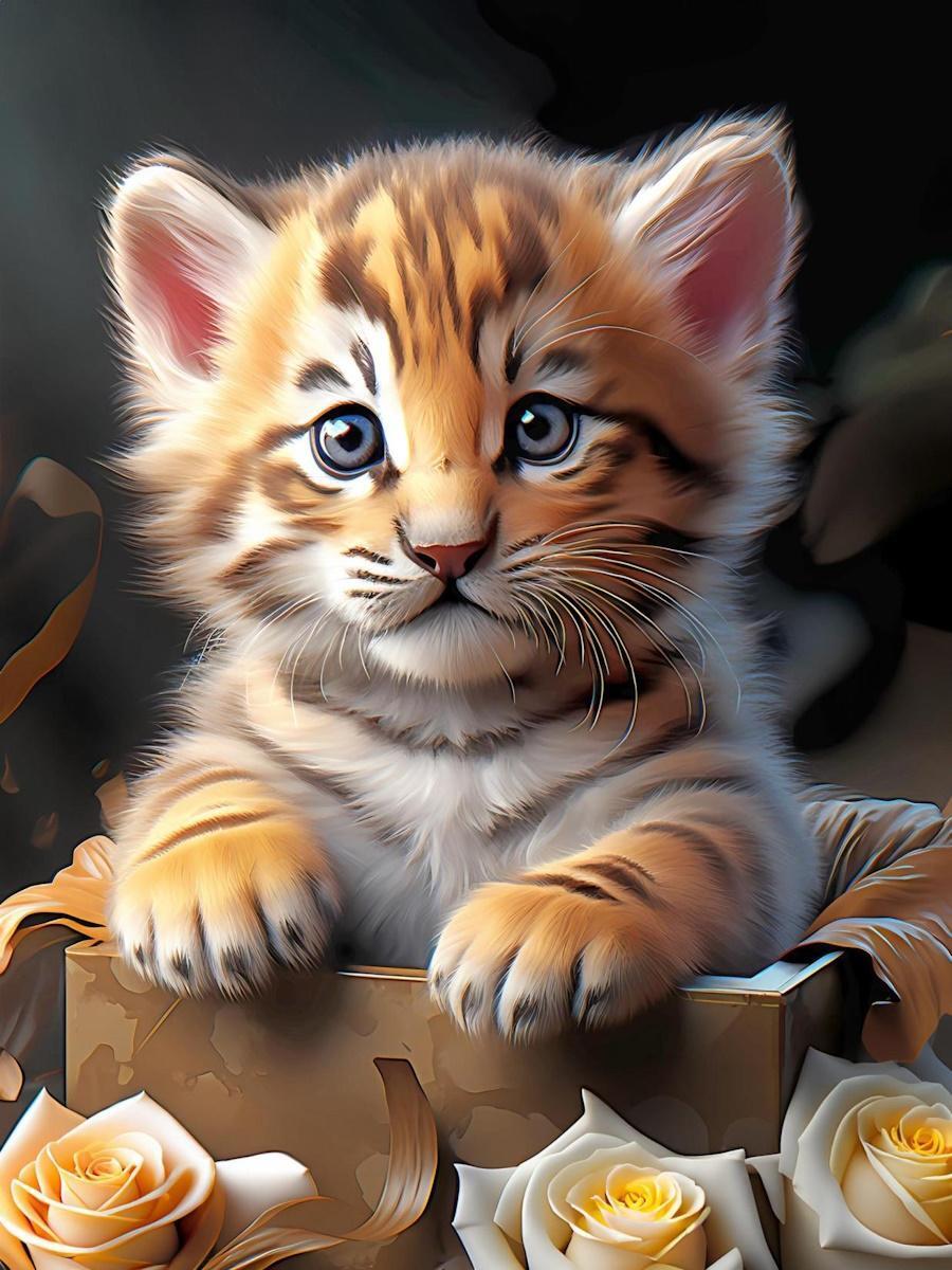 Создайте блестящий шедевр своими руками с алмазной мозаикой "Тигрёнок в коробке"!