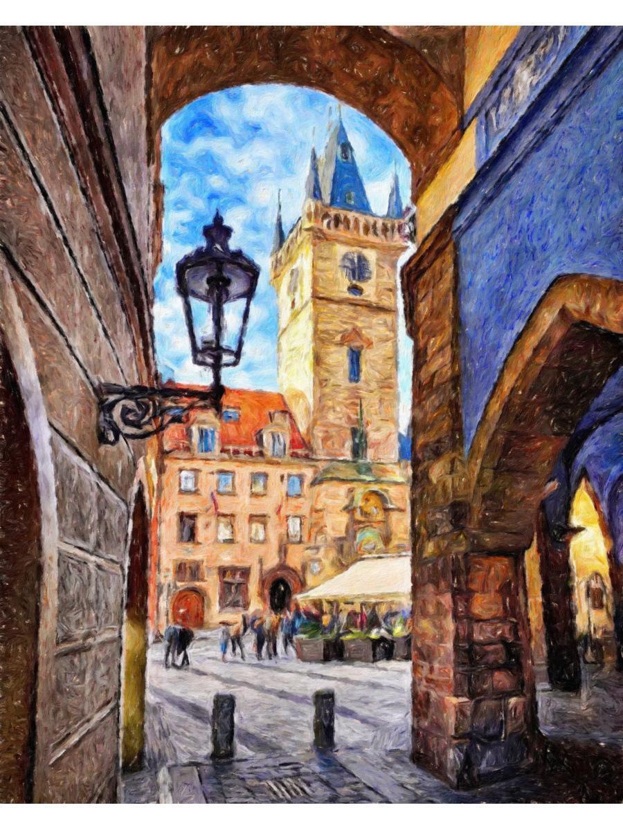 Алмазная мозаика "Улица старого города", 30х40см, с подрамником, 27 цветов