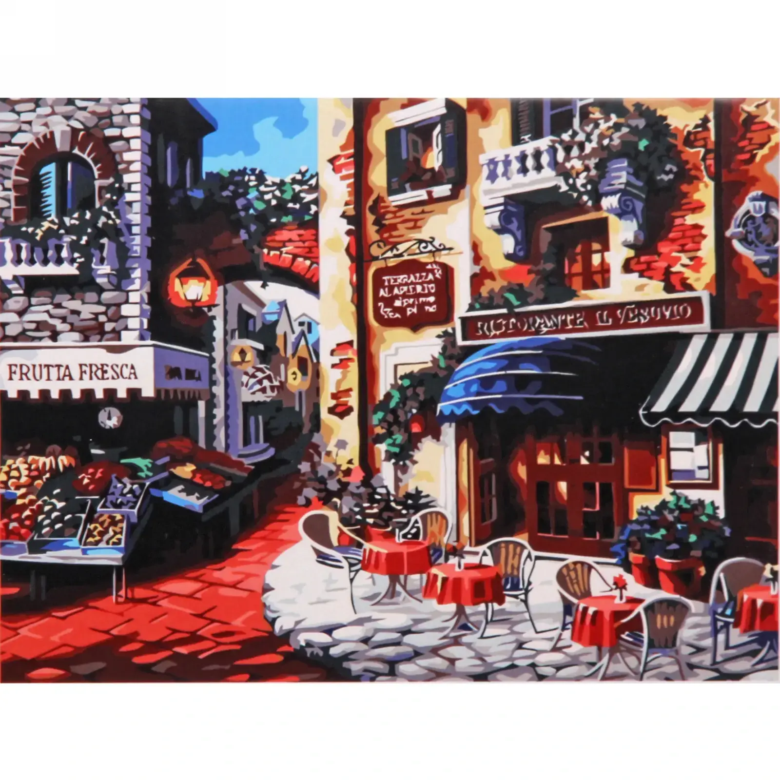 Алмазная мозаика 'Улочки' 40*50см, деревянный подрамник, готовая рамка