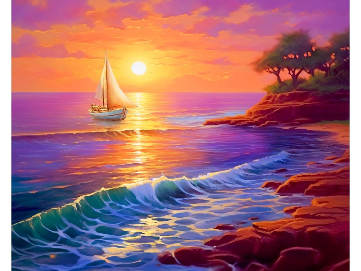 Алмазная мозаика «Парус на закате», 40х50 см, частичное заполнение, подрамник, 30 цветов