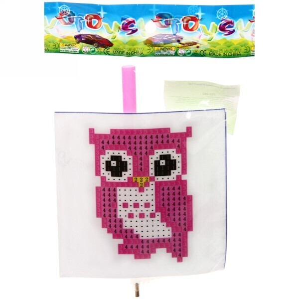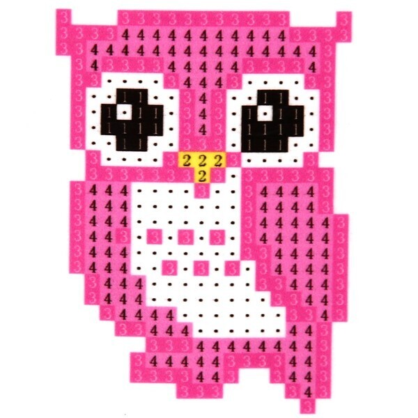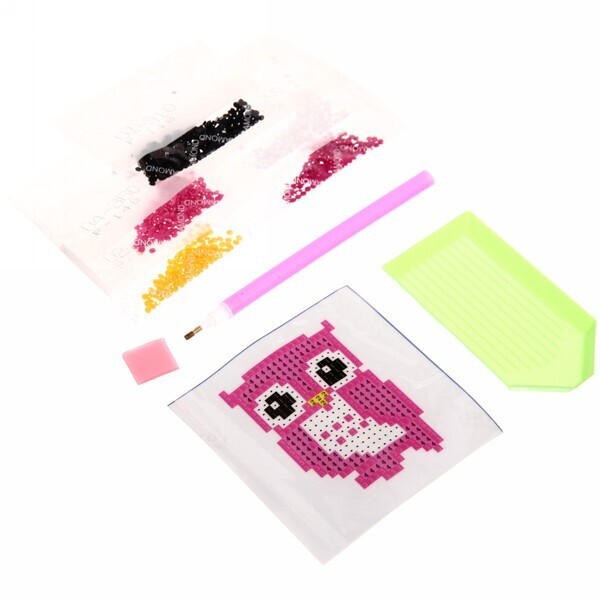 Алмазная мозаика 'Сова' 9х9см, розовая, с черными и белыми деталями