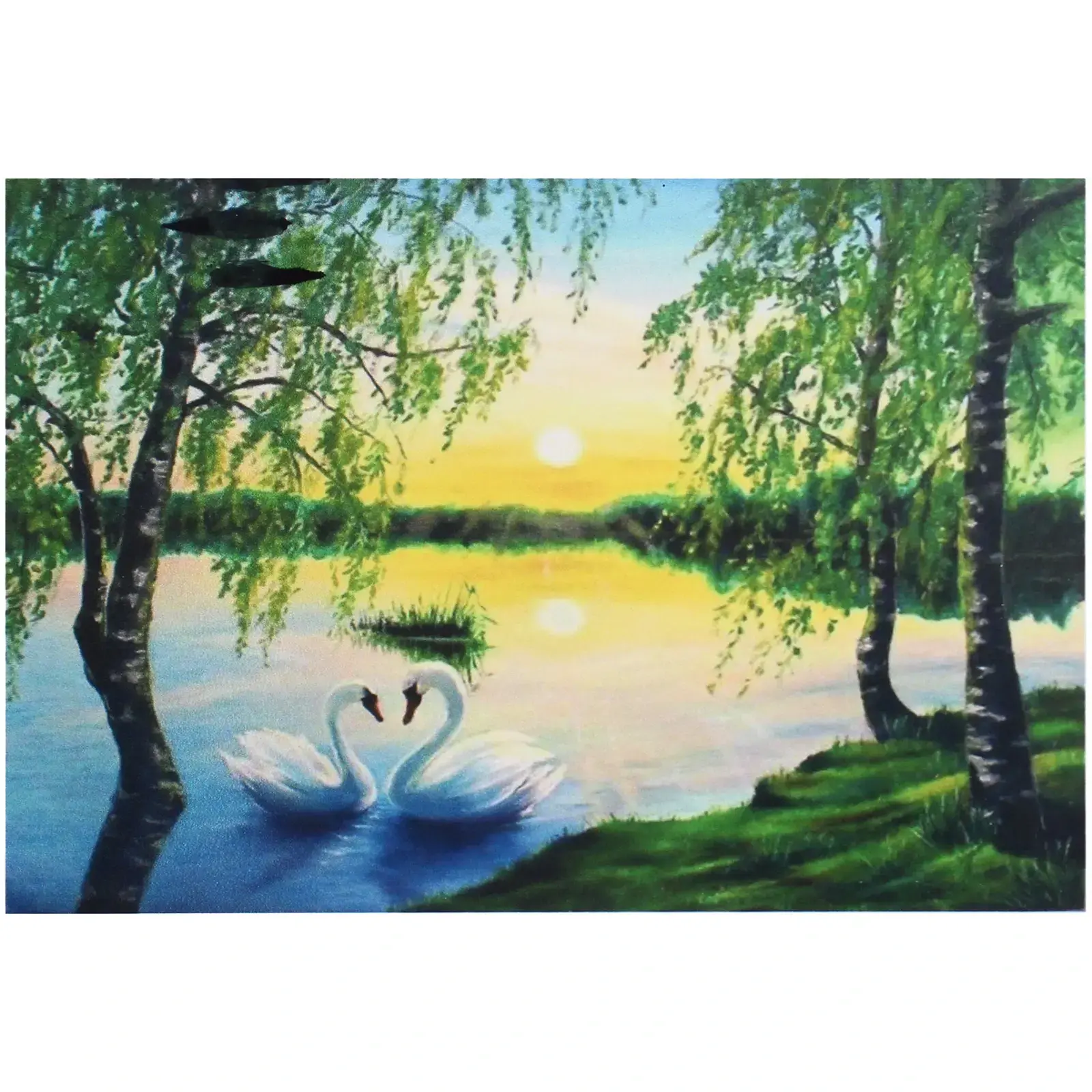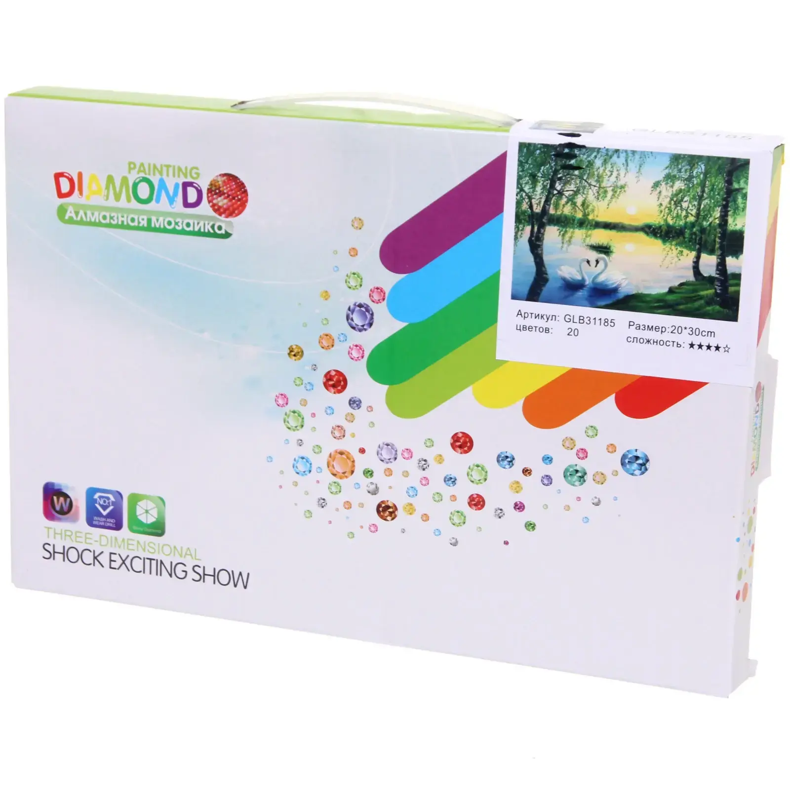 Алмазная мозаика «Мир ярких красок» с лебедями, полное заполнение, 20x30 см, дерево+пвх