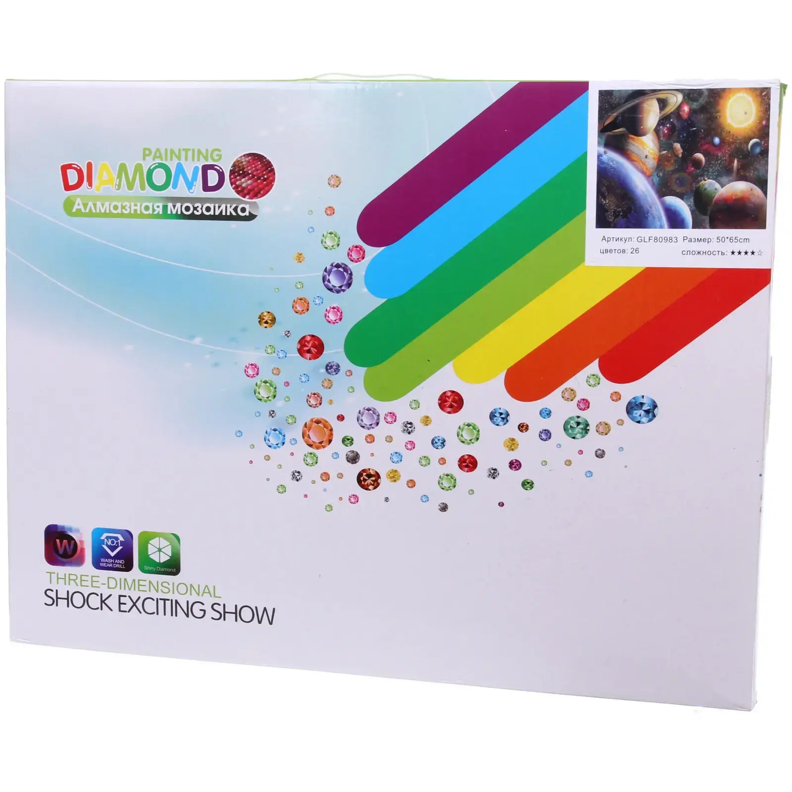 Размер готовой картины составляет 50х65 см, что позволяет ей стать центральным элементом декора в любом помещении. Яркие цвета и детализированное изображение космоса с планетами и звездами создадут атмосферу волшебства и загадки. Не упустите возможность сделать свой дом более уютным и стильным с помощью этой уникальной алмазной мозаики!