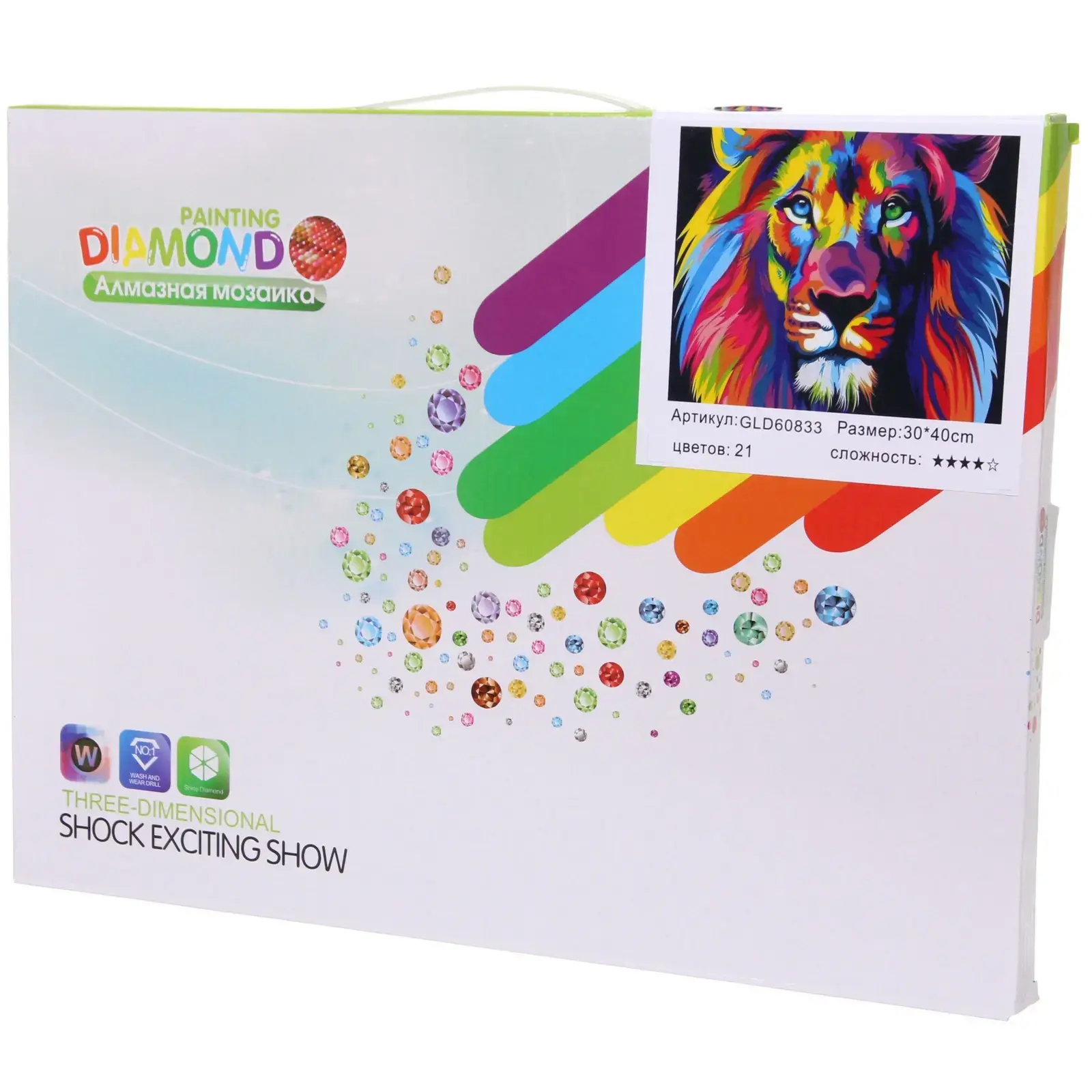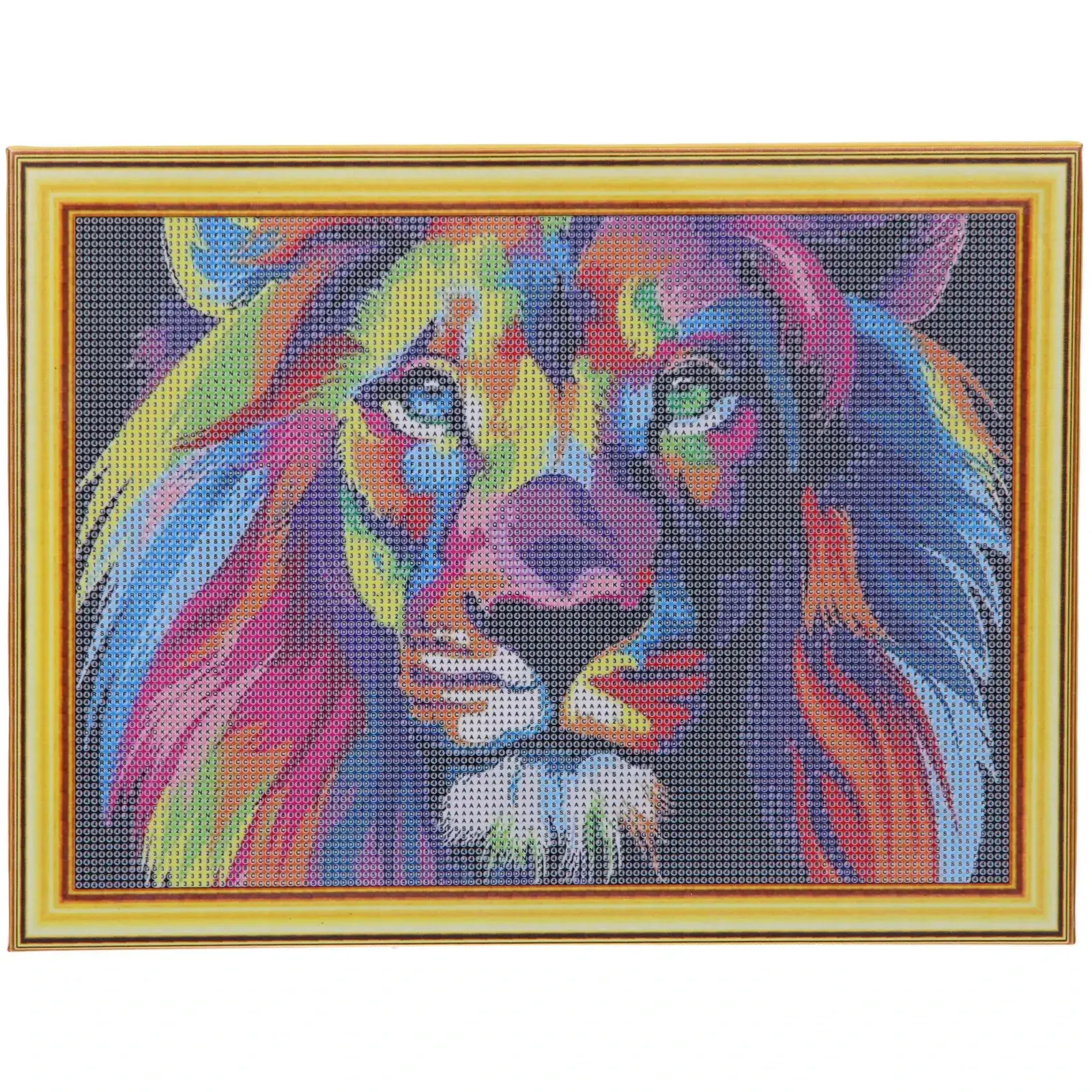 Алмазная мозаика на подрамнике «МИР ЯРКИХ КРАСОК» с полным заполнением, лев, 30х40 см, дерево, лен