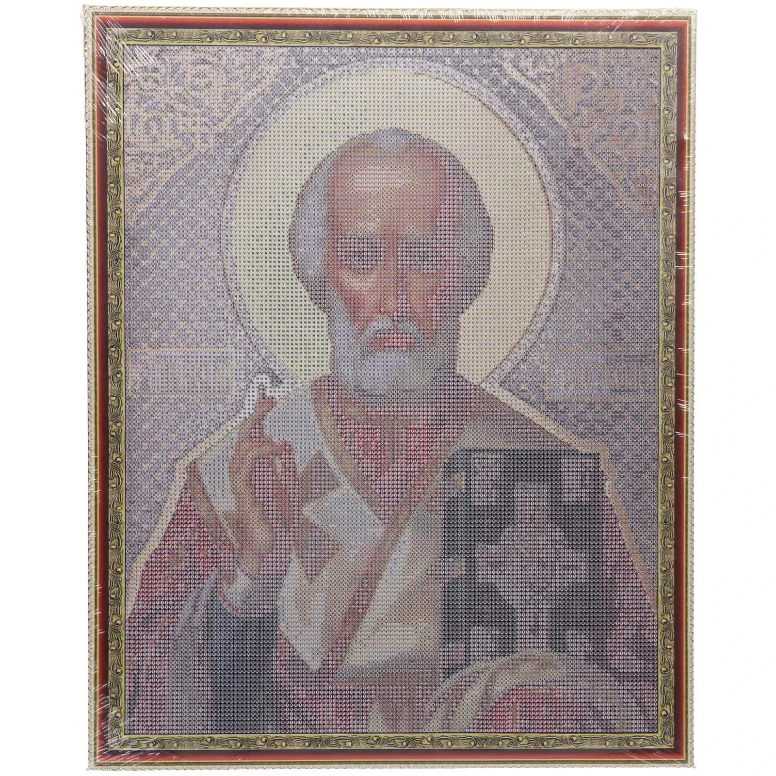 Размер готовой работы составляет 40х50 см, что делает её идеальной для оформления интерьера. Холст обрамлён в рамку, что добавляет завершённости вашему произведению. Материалы, используемые в наборе, включают дерево, лен и пластик, что гарантирует долговечность и качество. Не упустите возможность создать свою собственную икону, которая станет не только украшением, но и символом веры.