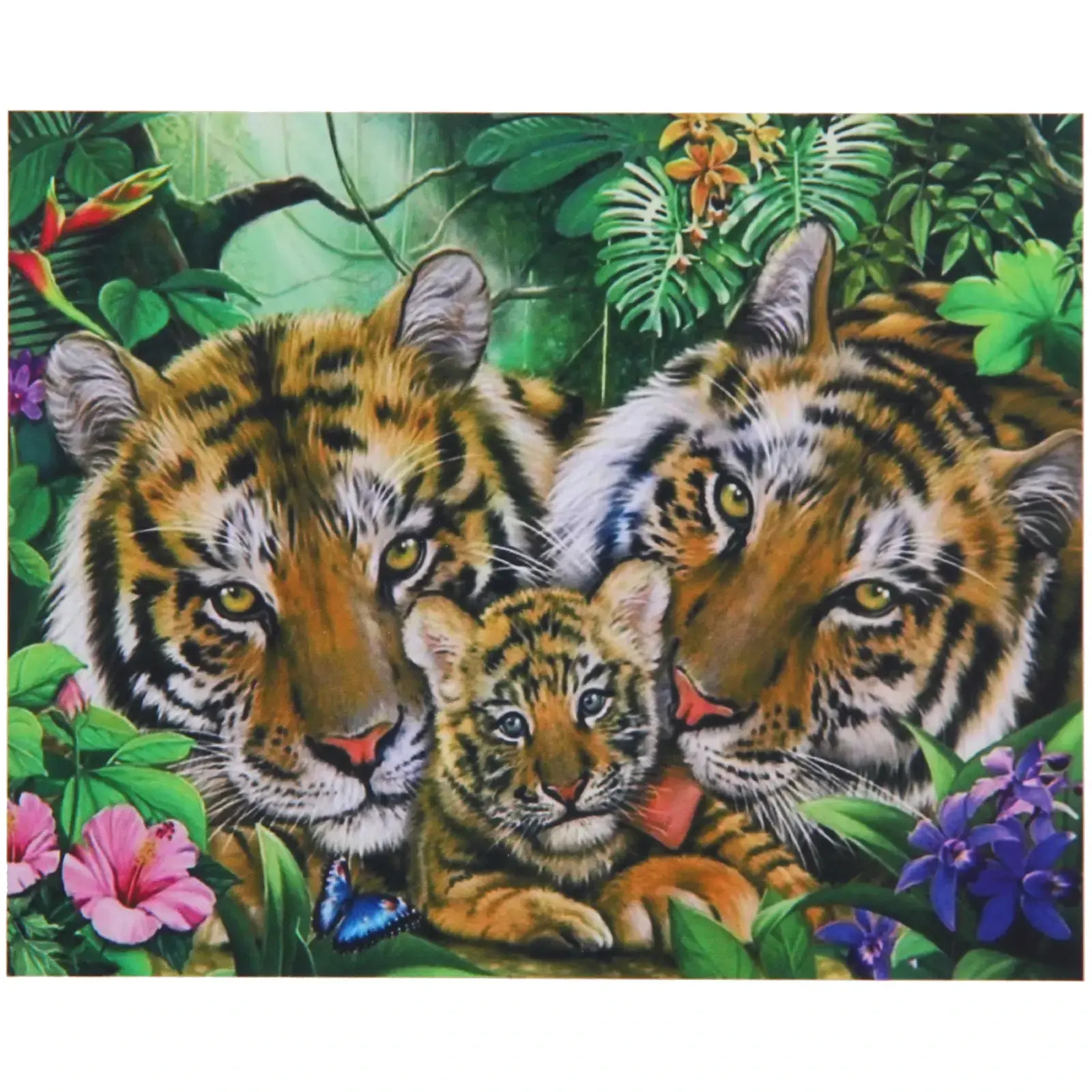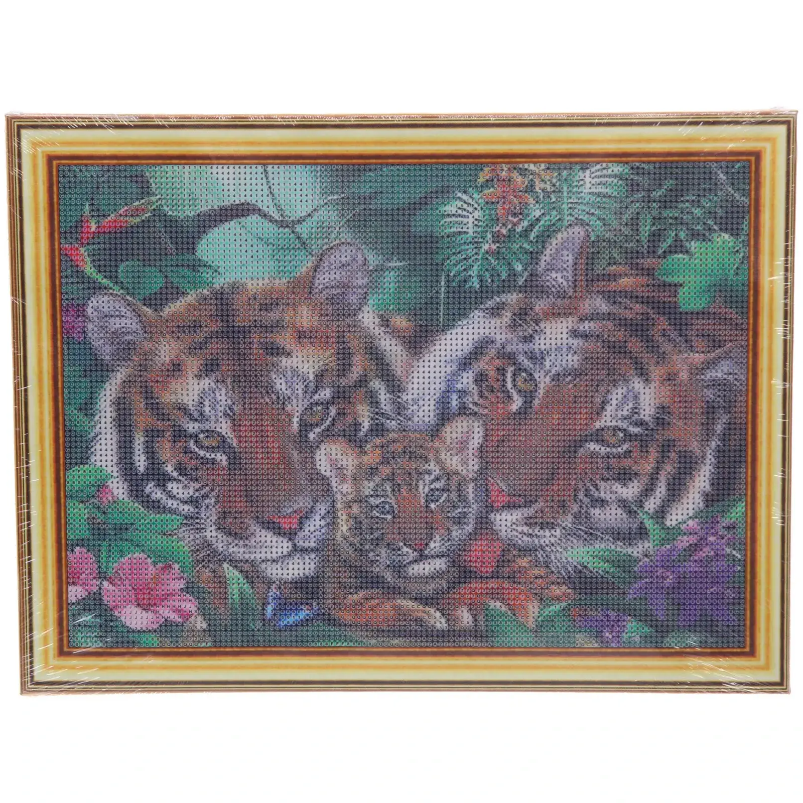 Алмазная мозаика "МИР ЯРКИХ КРАСОК" — это не просто набор для творчества, а возможность создать собственный шедевр, который украсит ваш дом. Используя стразовые элементы с алмазной огранкой, вы сможете получить яркую и детализированную картину с изображением трех тигров, которая станет настоящим украшением вашего интерьера.
