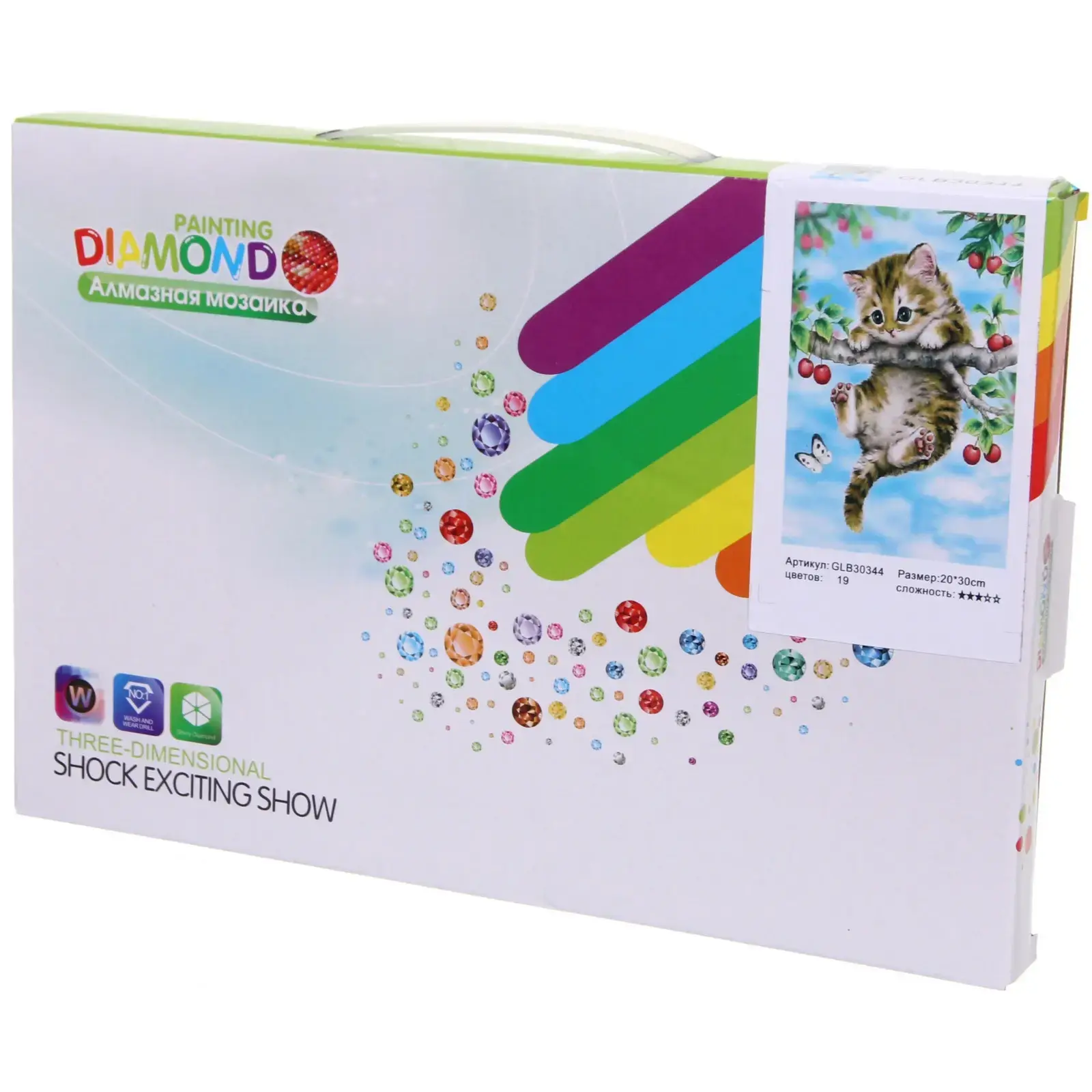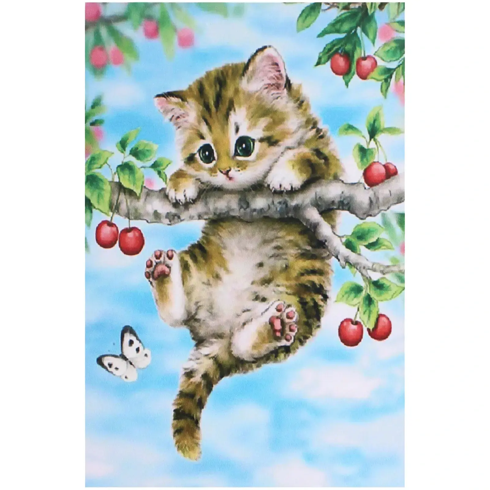Алмазная мозаика «Мир ярких красок» с котенком на ветке, 20x30 см, дерево/ПВХ/пластик