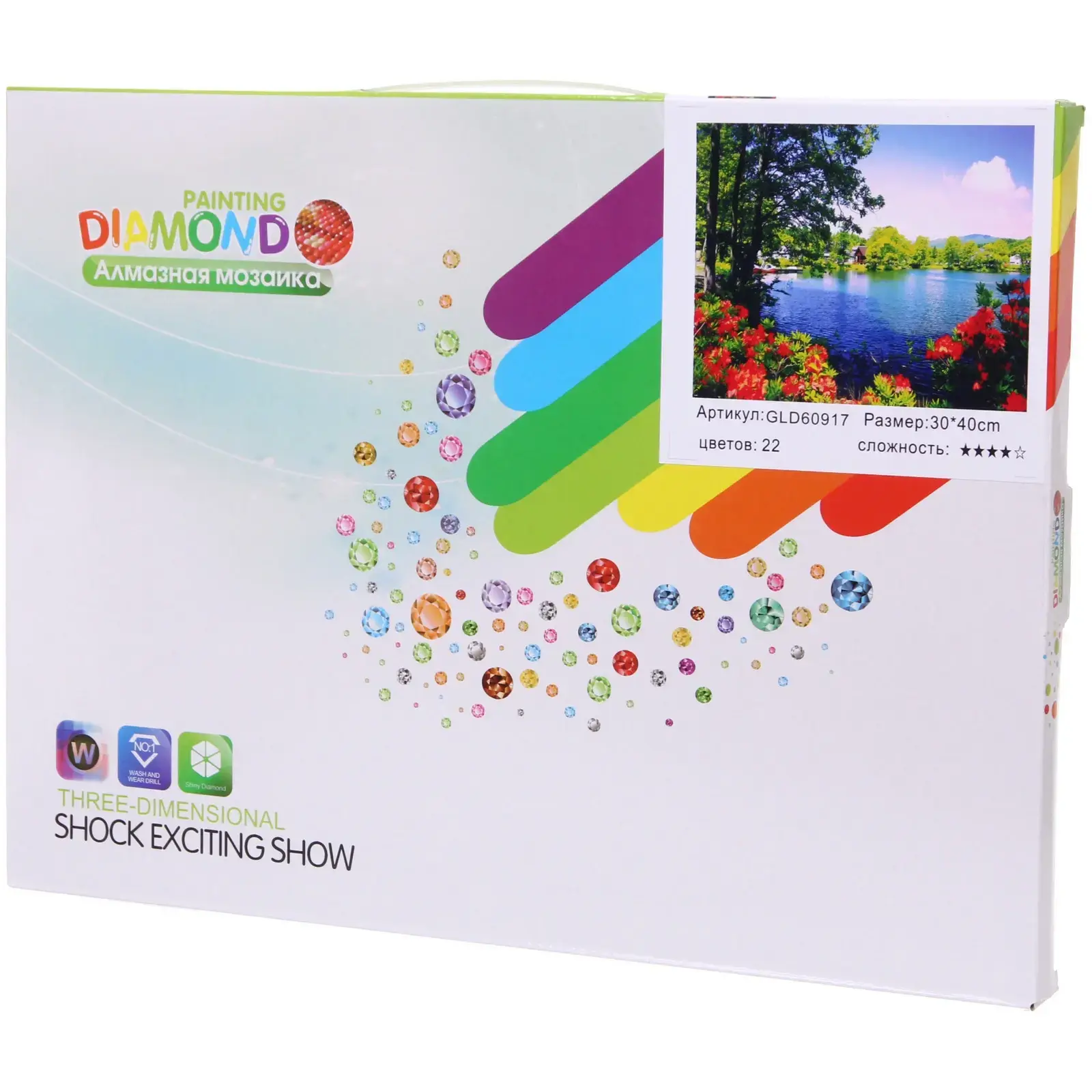 Алмазная мозаика «МИР ЯРКИХ КРАСОК» на подрамнике, пейзаж 30x40см, полное заполнение, дерево/лен/пластик
