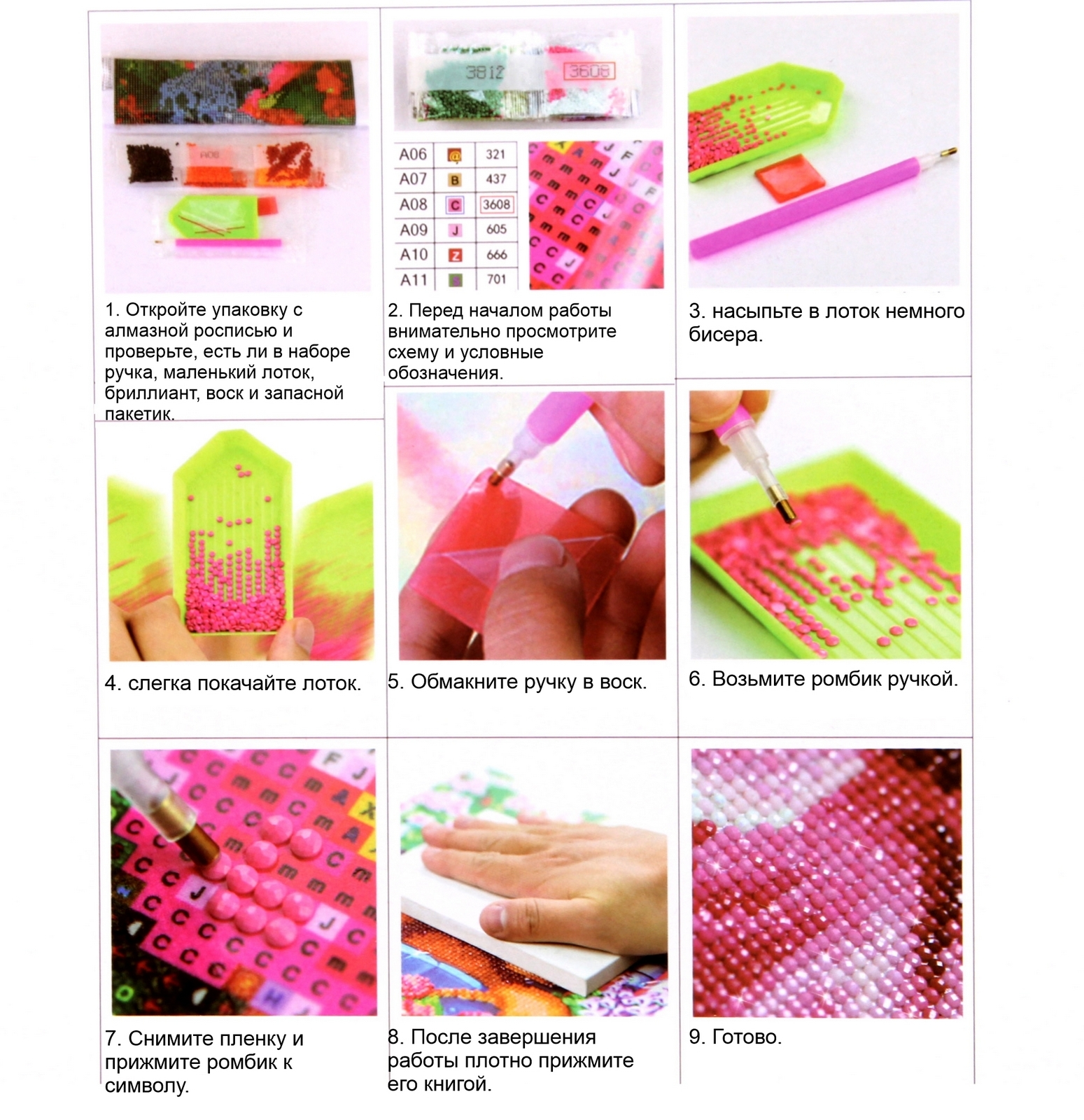 - Удобная система маркировки — символы на холсте соответствуют пакетам со стразами