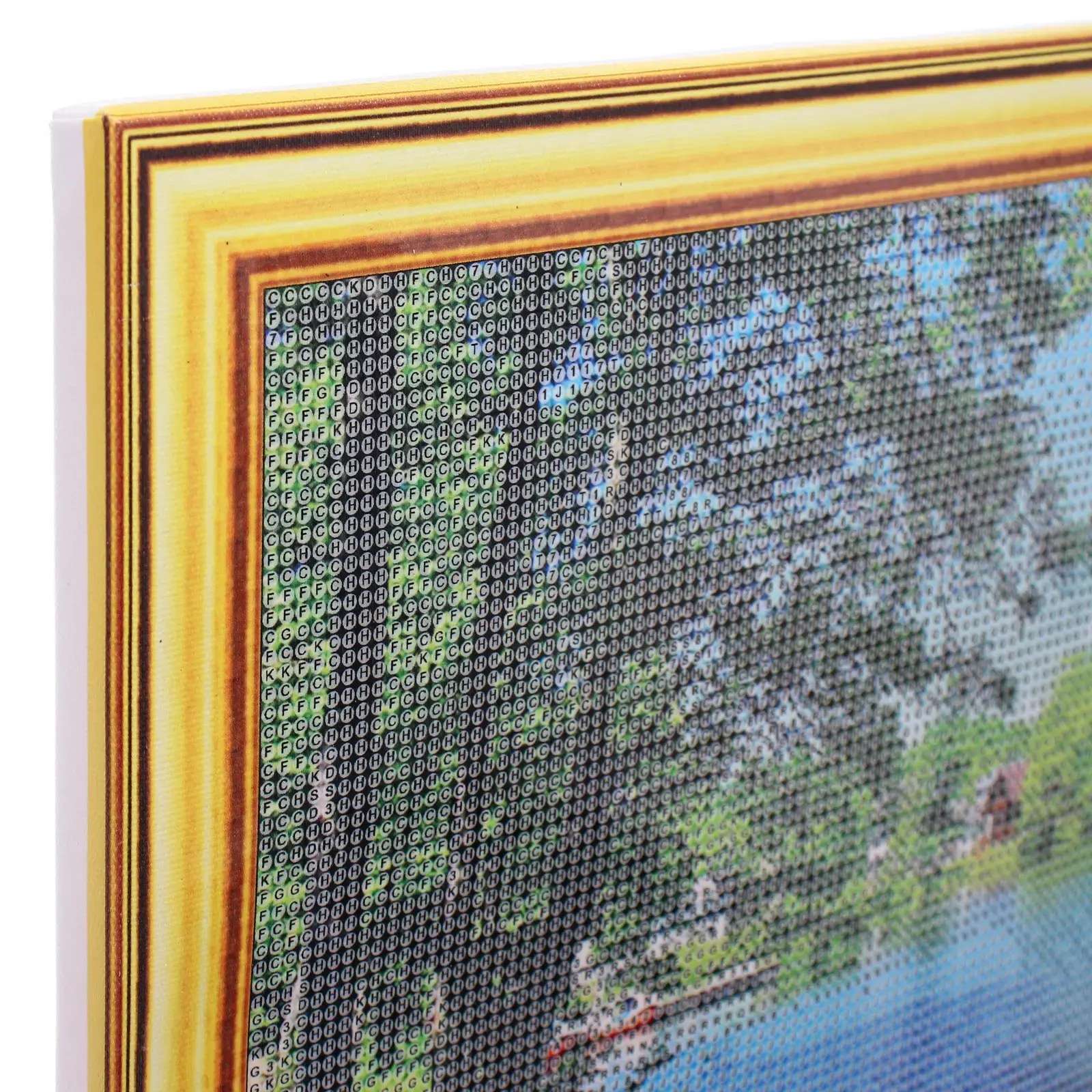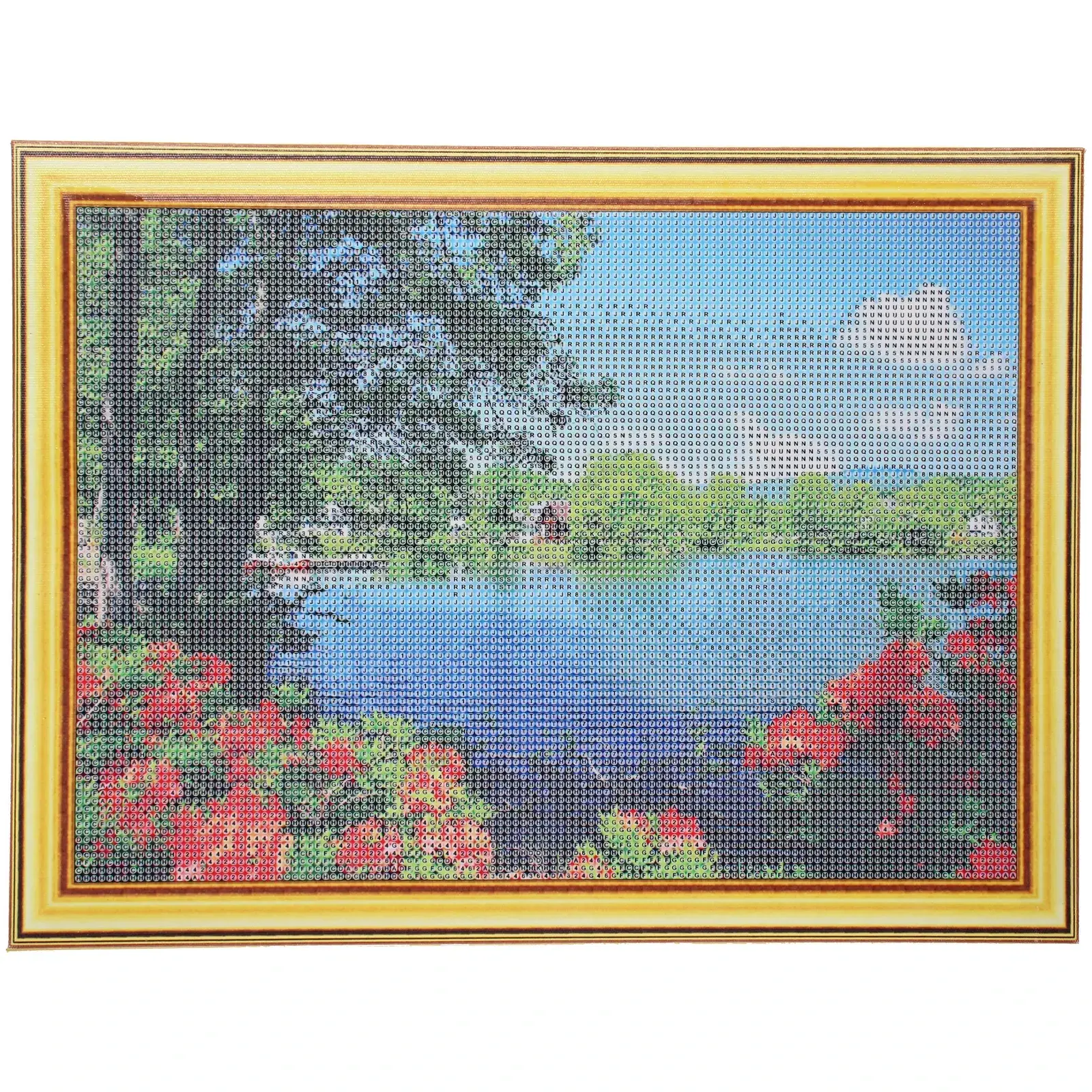 Прочный лён с клеевым слоем выдержит многократную коррекцию. Пластиковые стразы не выцветают со временем. Размер 30x40 см оптимален для детализации пейзажа — каждая травинка и лепесток проработаны в схеме.