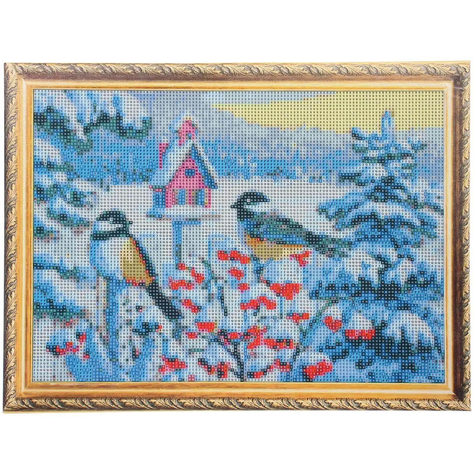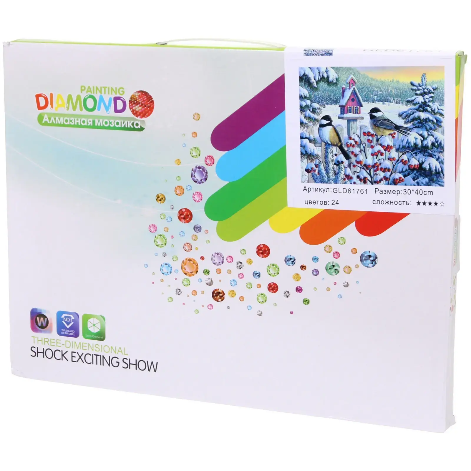 Алмазная мозаика на подрамнике «МИР ЯРКИХ КРАСОК», зимние синицы, 30х40 см, 24 цвета
