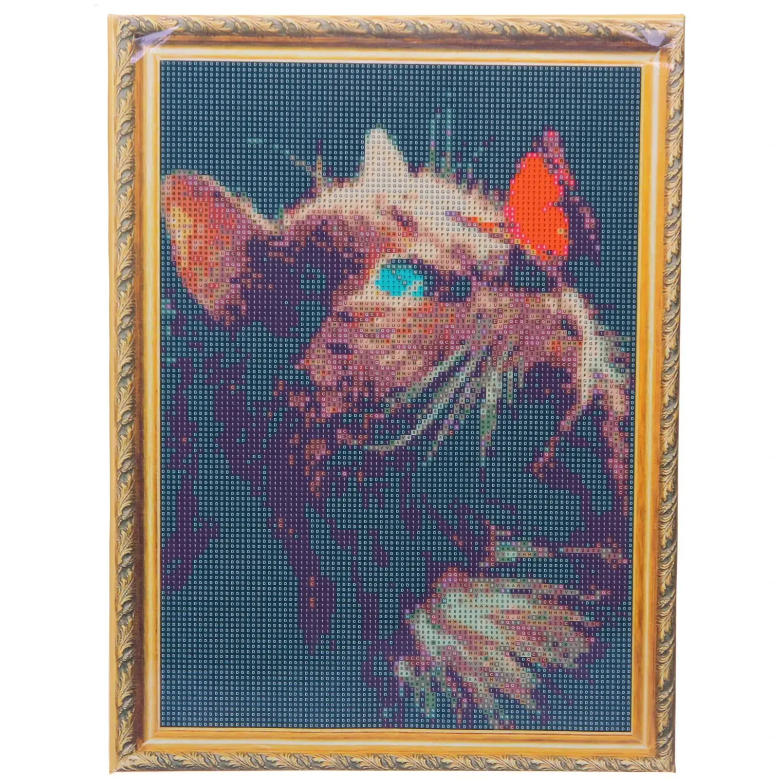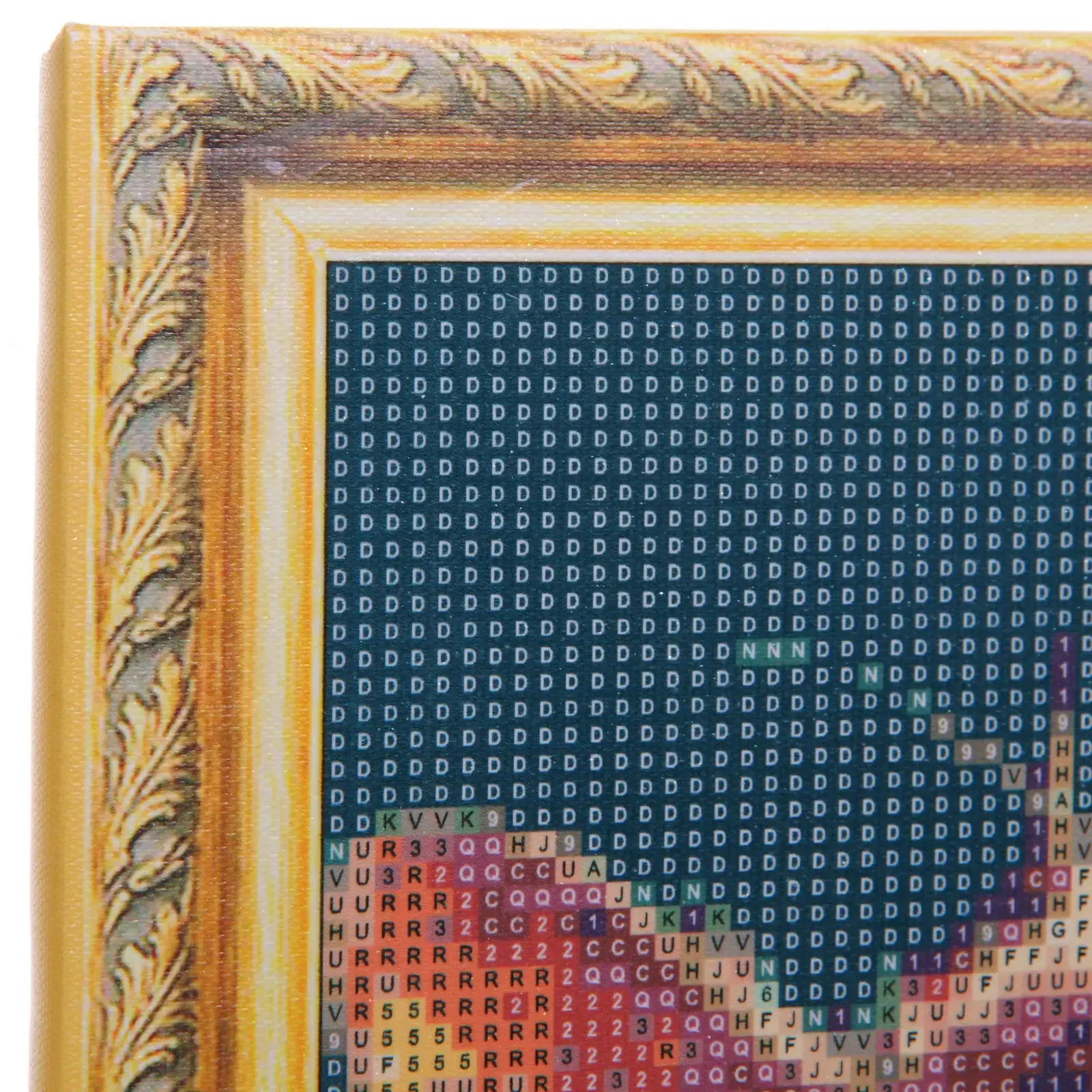 Размер готовой работы: 30×40 см (формат А3). Основа: деревянный подрамник с устойчивым ПВХ-покрытием. Комплектация: пронумерованные пакеты со стразами, инструменты, подробная инструкция с визуальными подсказками. Рекомендовано для взрослых из-за мелких деталей.