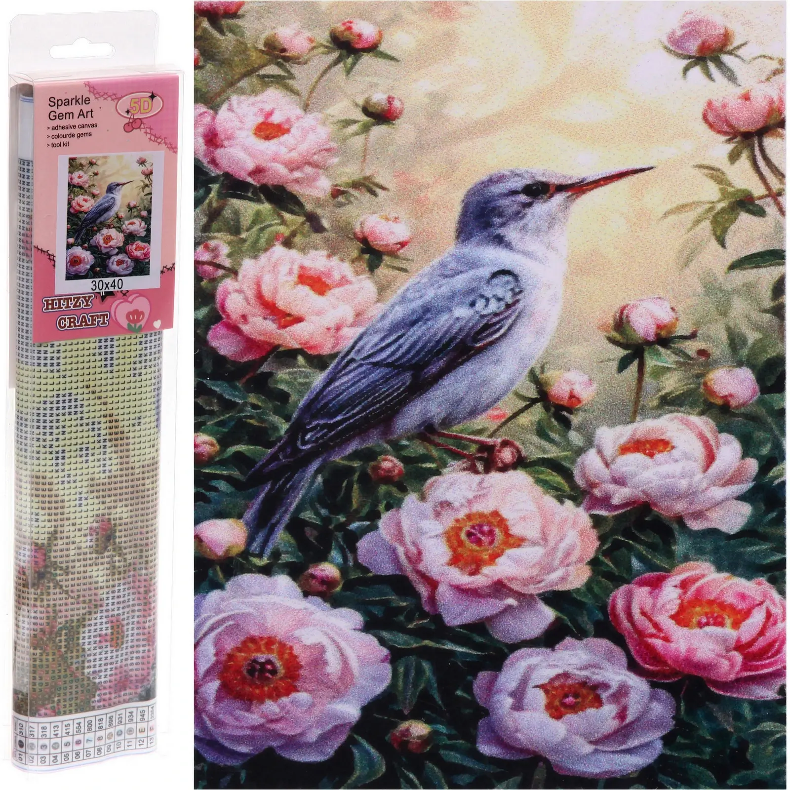 Погрузитесь в увлекательный процесс создания алмазной мозаики "DIAMOND". Эта картина с изящной колибри среди розовых цветов станет не только вашим первым творческим опытом, но и прекрасным украшением интерьера.