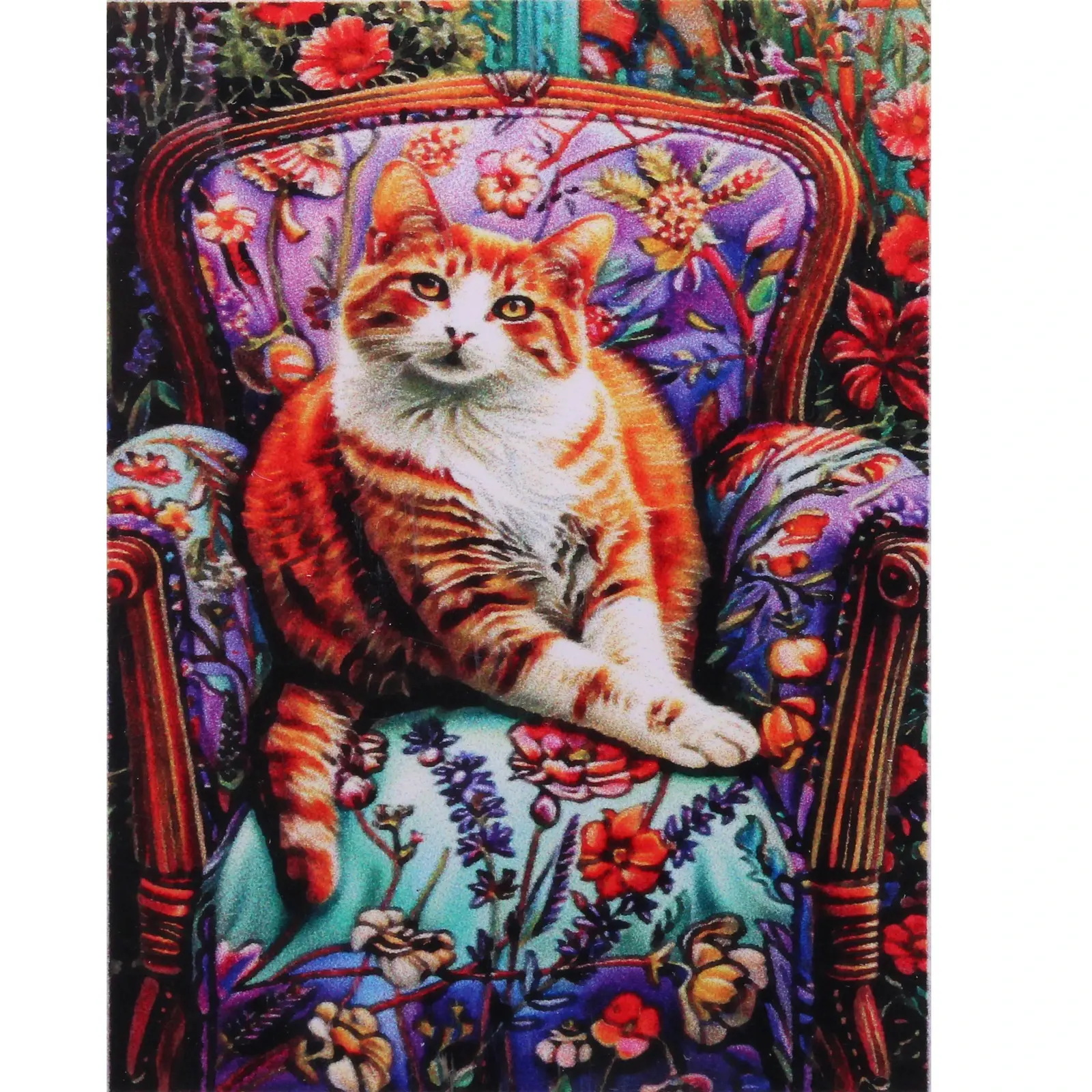 Погрузитесь в увлекательный процесс создания яркой картины с алмазной мозаикой «DIAMOND». Изображение очаровательного рыжего кота в цветочном кресле станет настоящим украшением вашего интерьера.