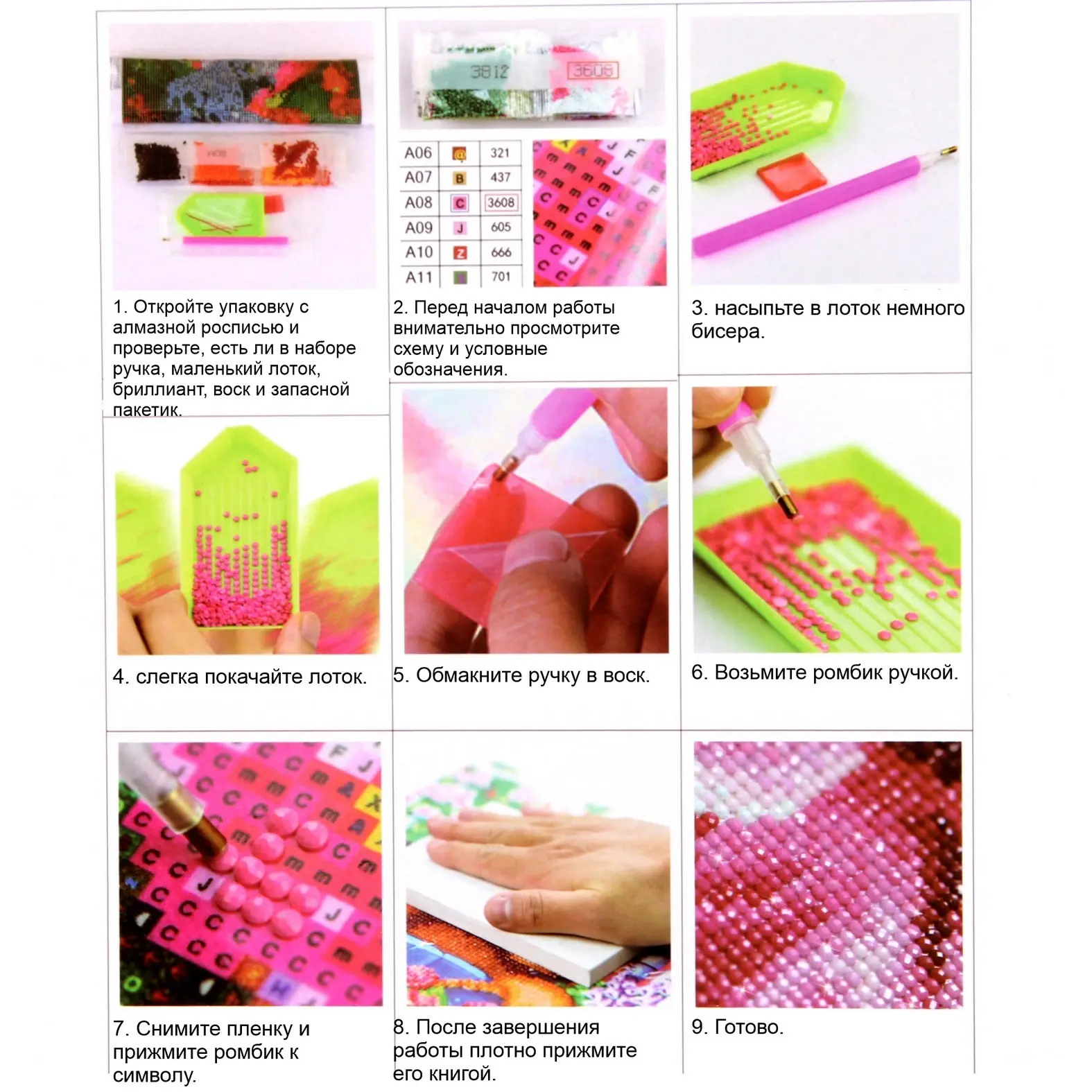 - Разноцветные стразы в пронумерованных пакетах