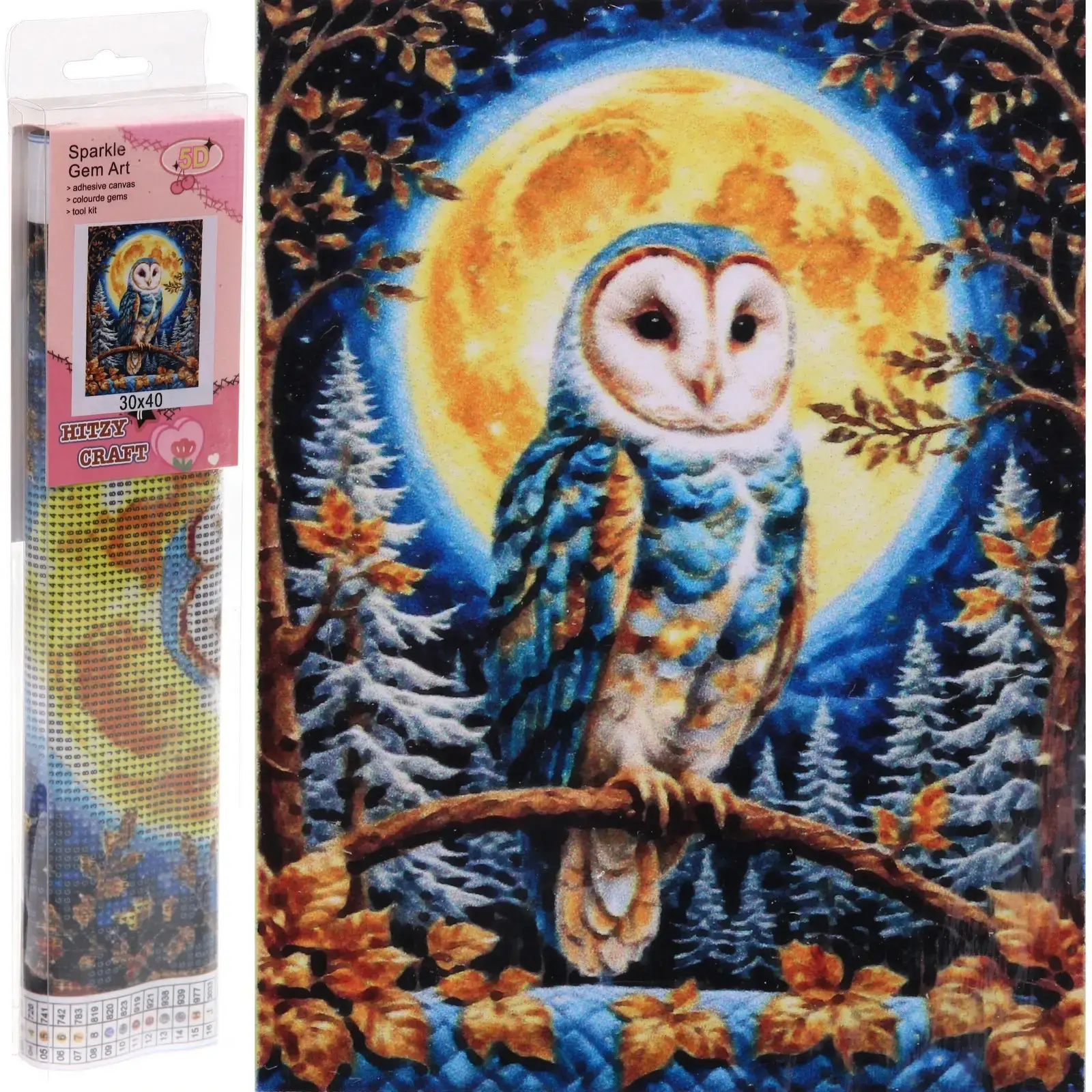 Алмазная мозаика "DIAMOND" 30х40см, полная выкладка, Сова и Луна, PVC