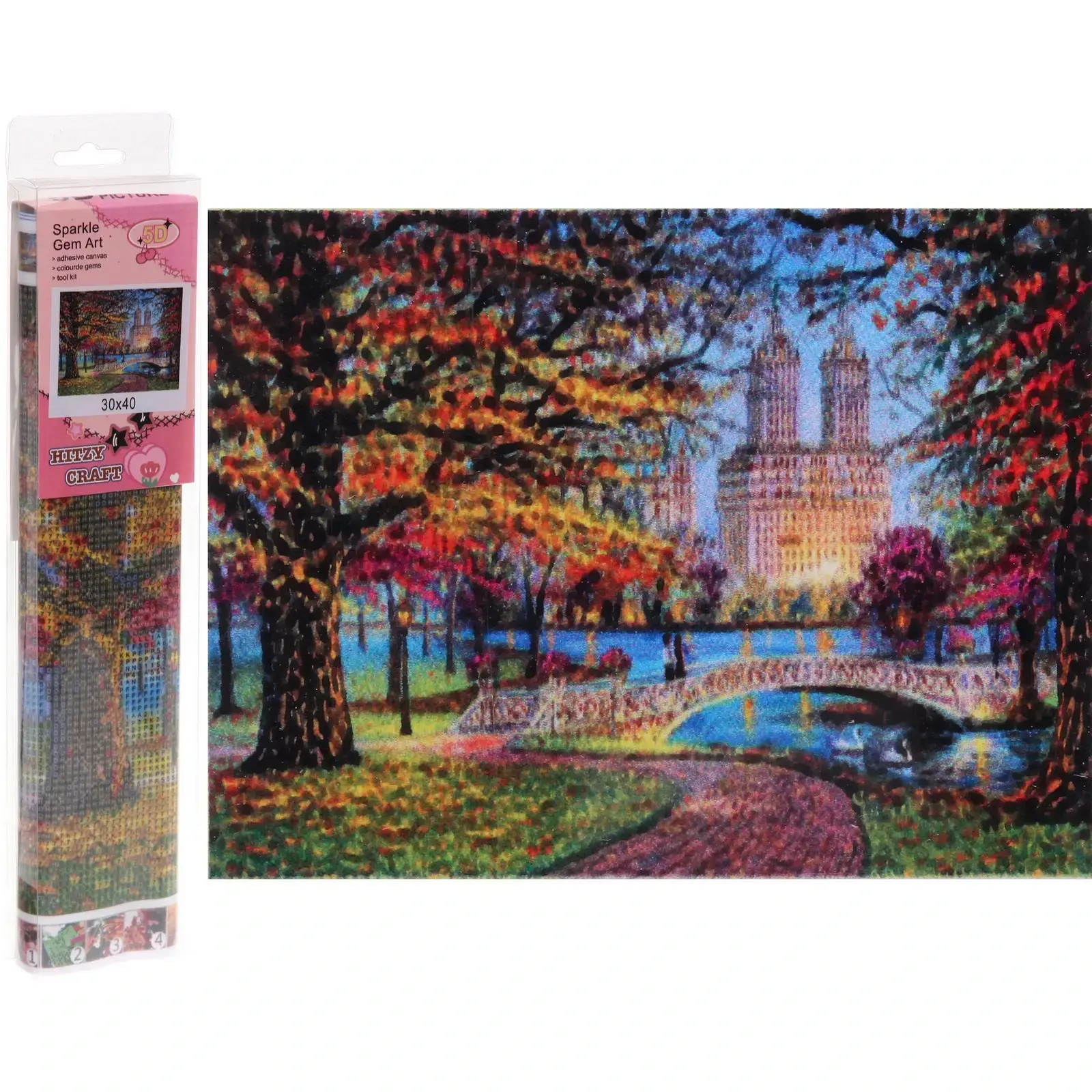 Материалы отличаются высоким качеством: стразы имеют идеальную огранку и блеск, а клейкий слой надёжно фиксирует элементы на холсте.