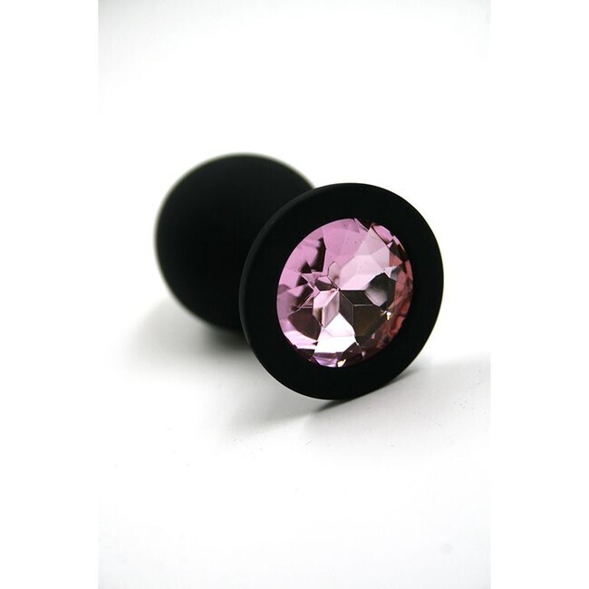 Анальная пробка L, силикон черный/розовый, 8,3см с кристаллом