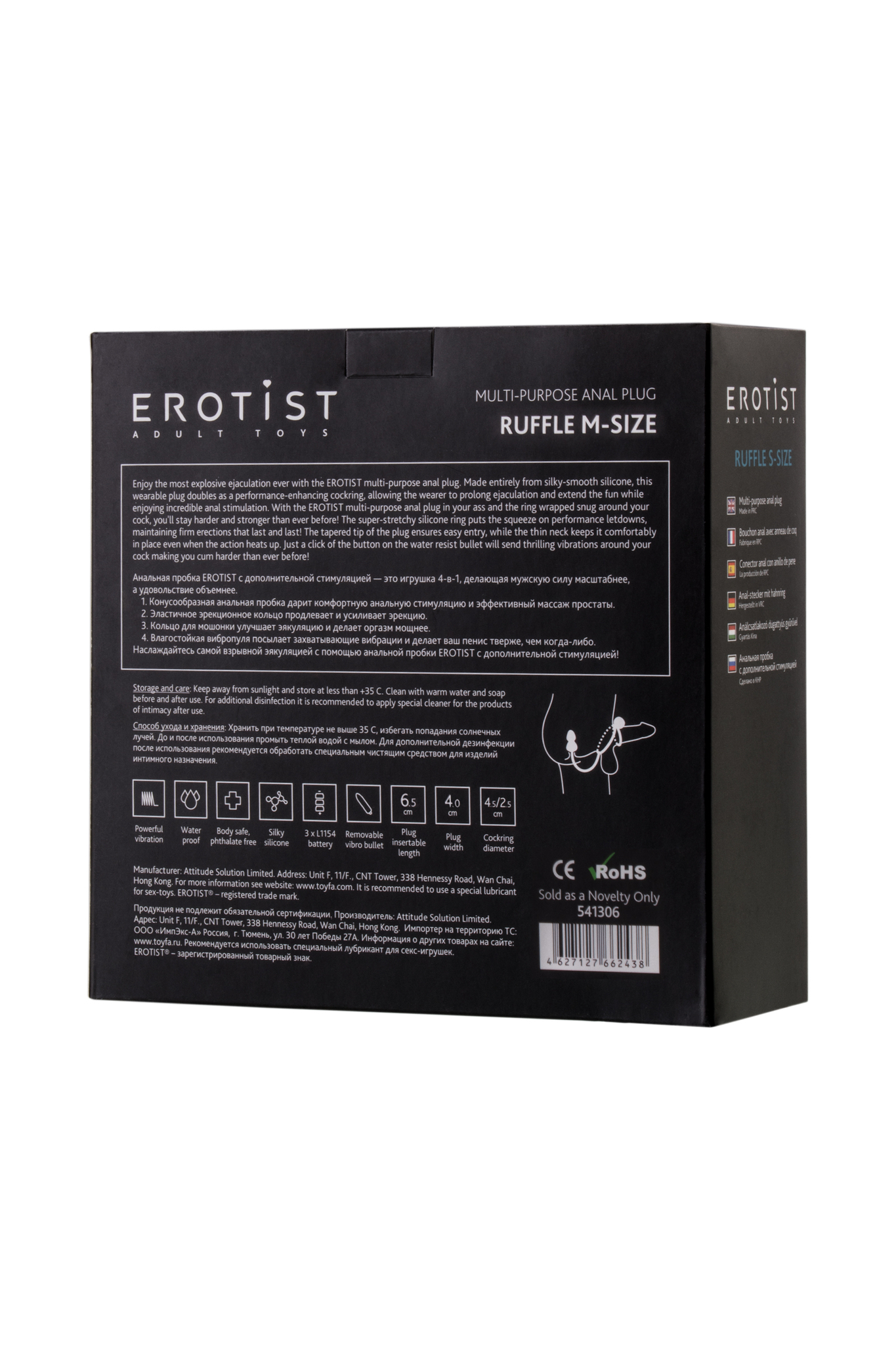 Размеры пробки: рабочая длина составляет 6,5 см, минимальный диаметр основной части — 2,5 см, максимальный диаметр — 4,5 см. Цвет — черный, что придаёт изделию стильный и элегантный вид. Влагостойкость позволяет использовать пробку в ванной или душе, добавляя разнообразие в ваши интимные моменты. Не упустите возможность испытать новые ощущения с анальной пробкой Erotist!