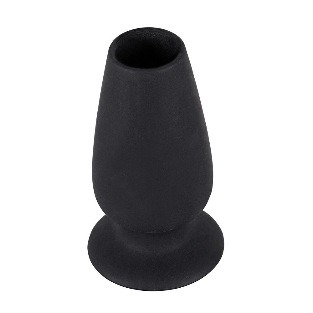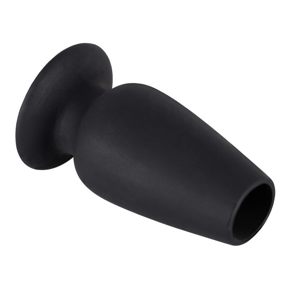 Анальная пробка с тоннелем, черная, 10см, диаметр 3-4.5см, силикон