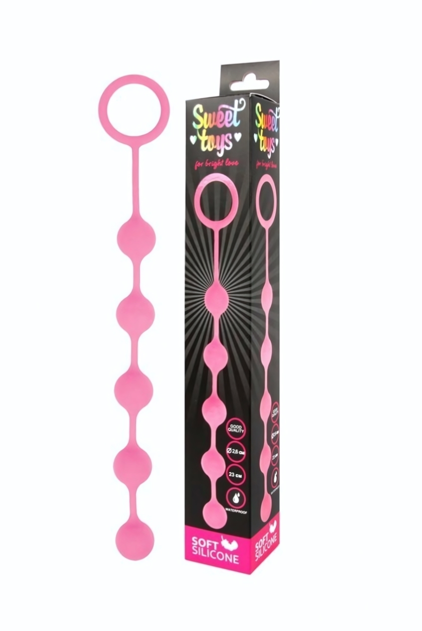 Анальная цепочка "Sweet Toys" розовая, длина 23см, диаметр 2.6см, силикон