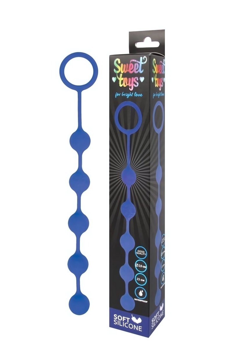 Анальная цепочка Sweet Toys, длина 23см, диаметр 2.6см, синий силикон