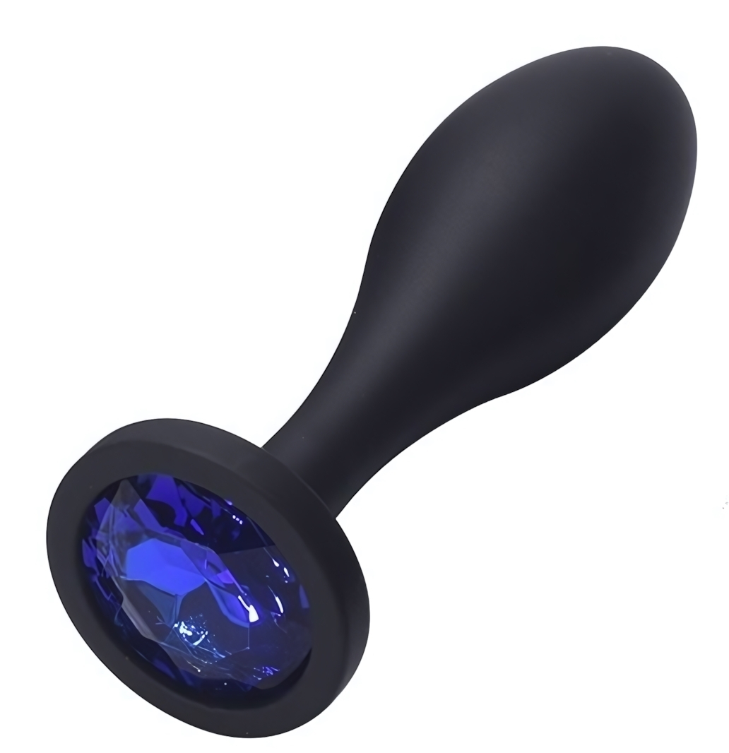 Анальная втулка с синим кристаллом, гипоаллергенный силикон, 9.5х3 см, комфортное введение
