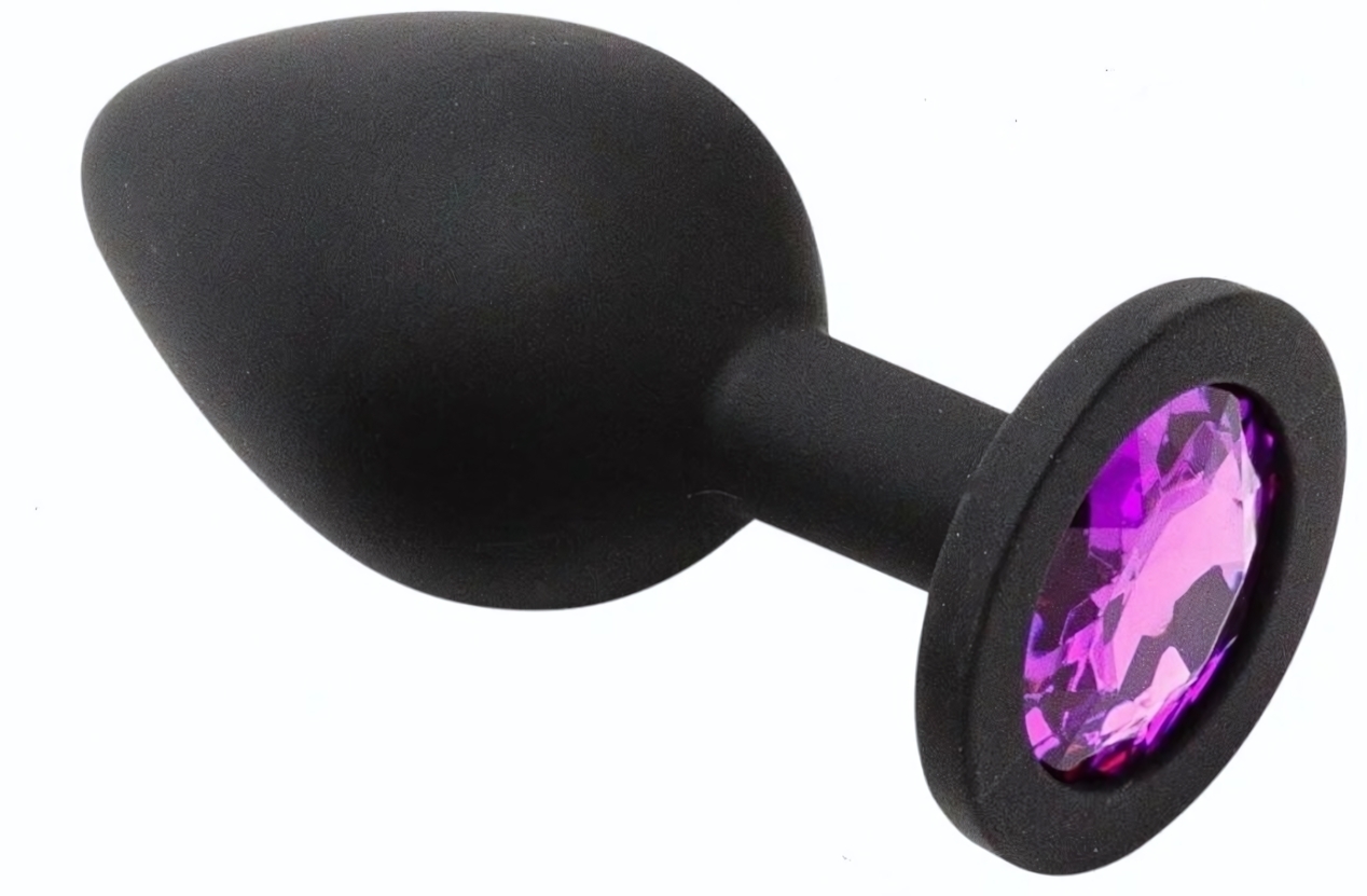 Анальная втулка с кристаллом, длина 7см, диаметр 2.8см, черная/фиолетовая, силикон