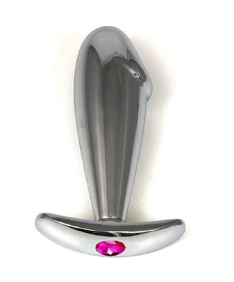 Анальная втулка с розовым кристаллом, 10см, серебристая, комфортное ношение