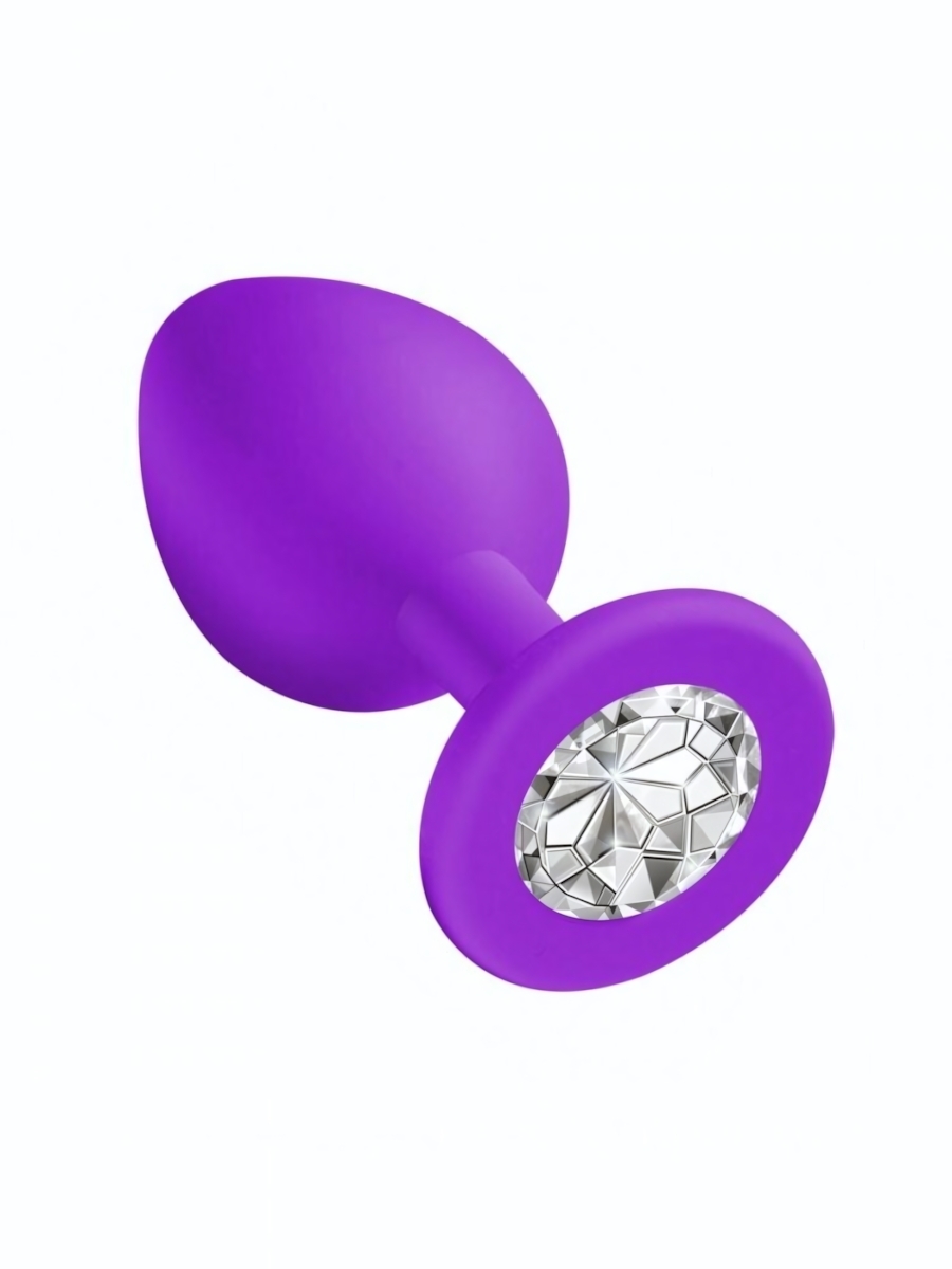 Анальная втулка с безопасным ограничителем, фиолетовый силикон, кристалл, 7 см