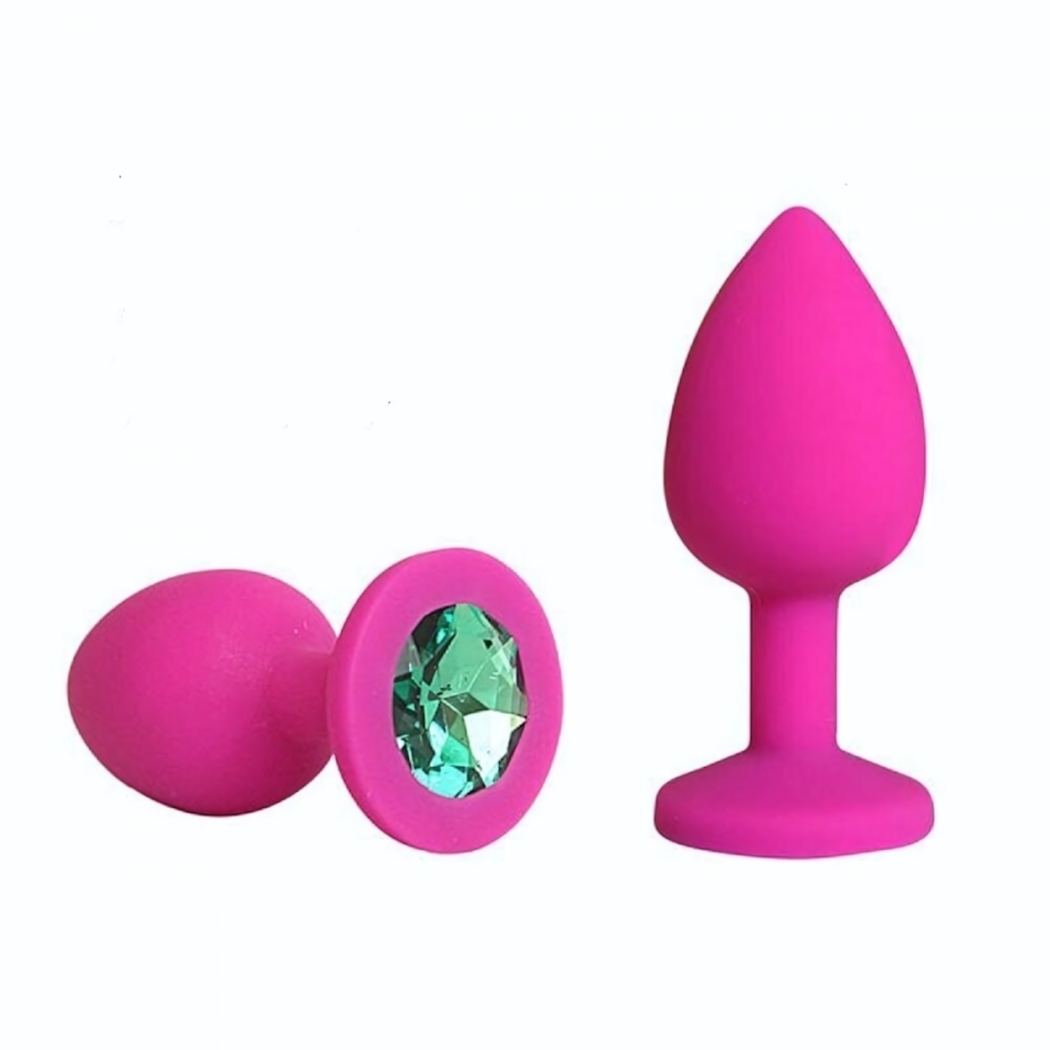 Анальная втулка Medium, с кристаллом, длина 8см, диаметр 3.5см, цвет фуксия/зеленый